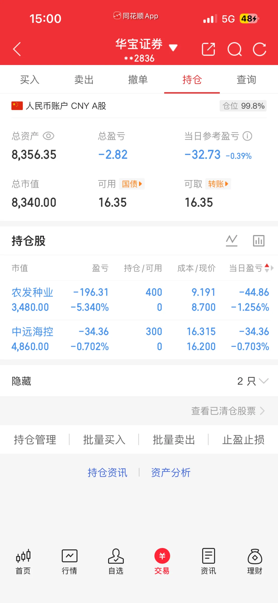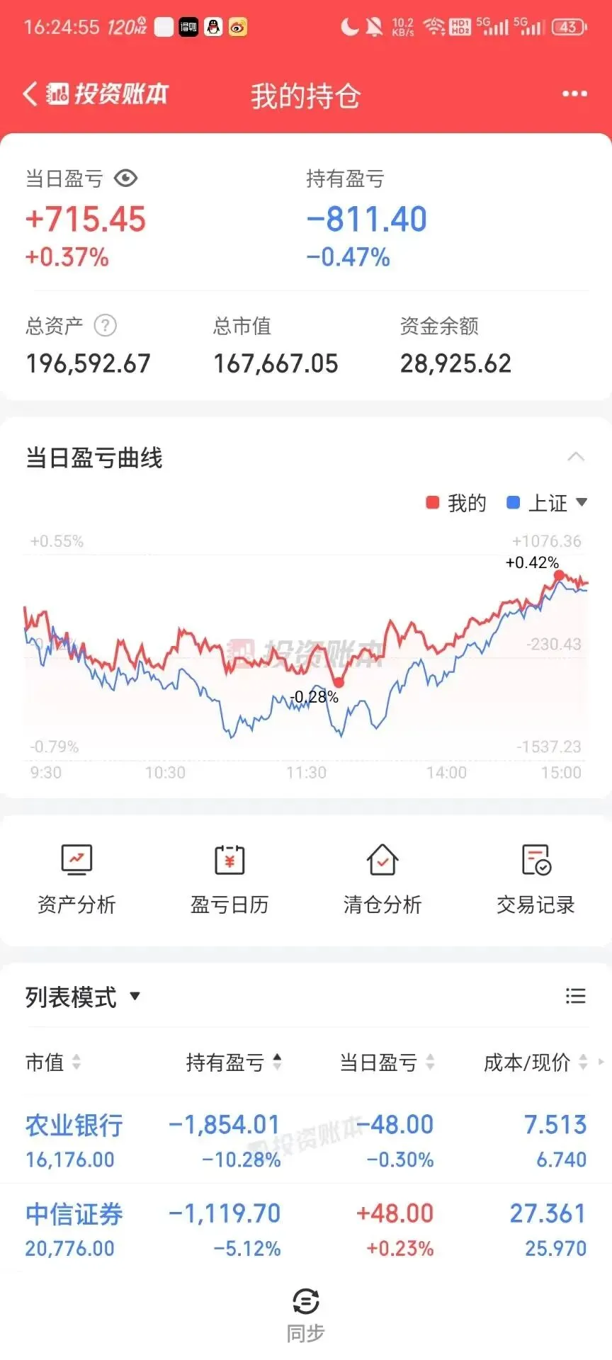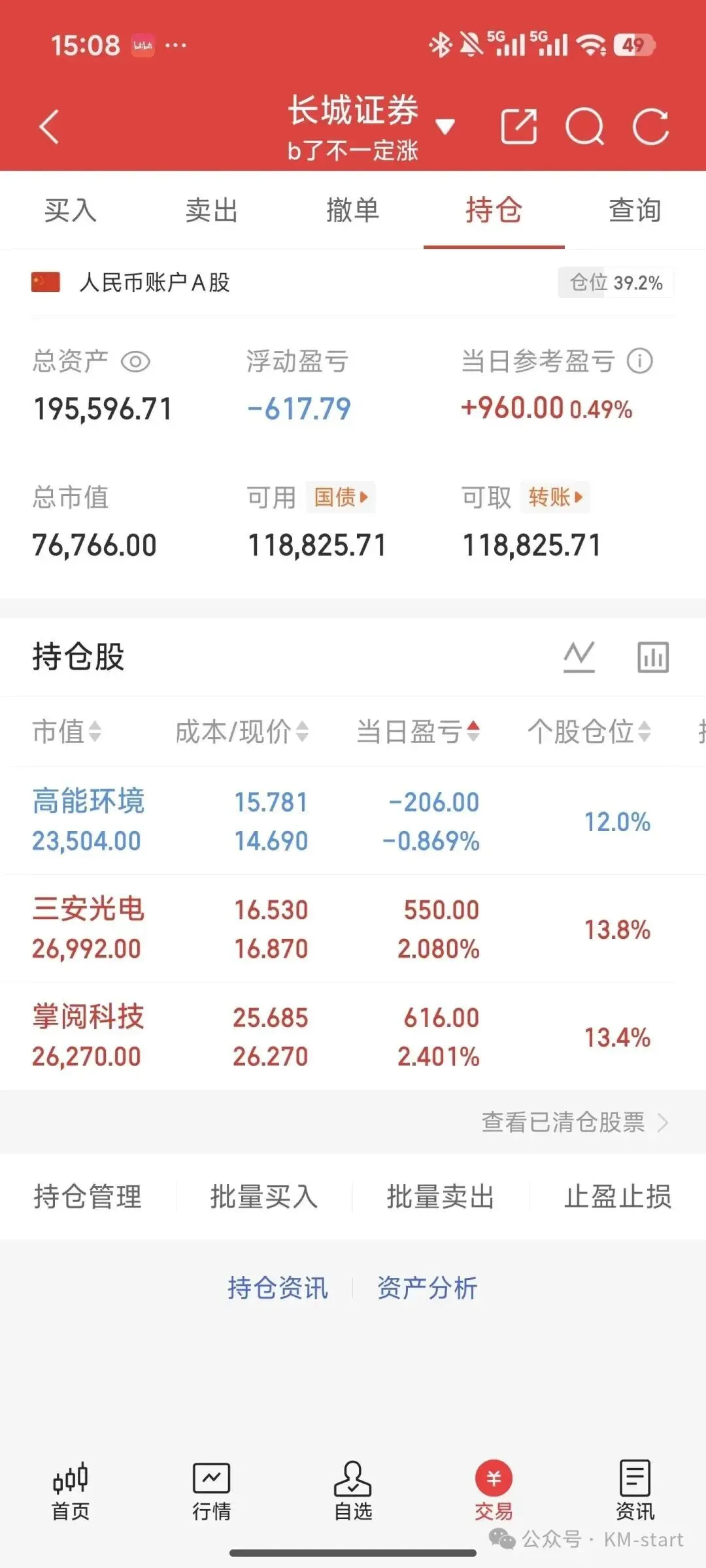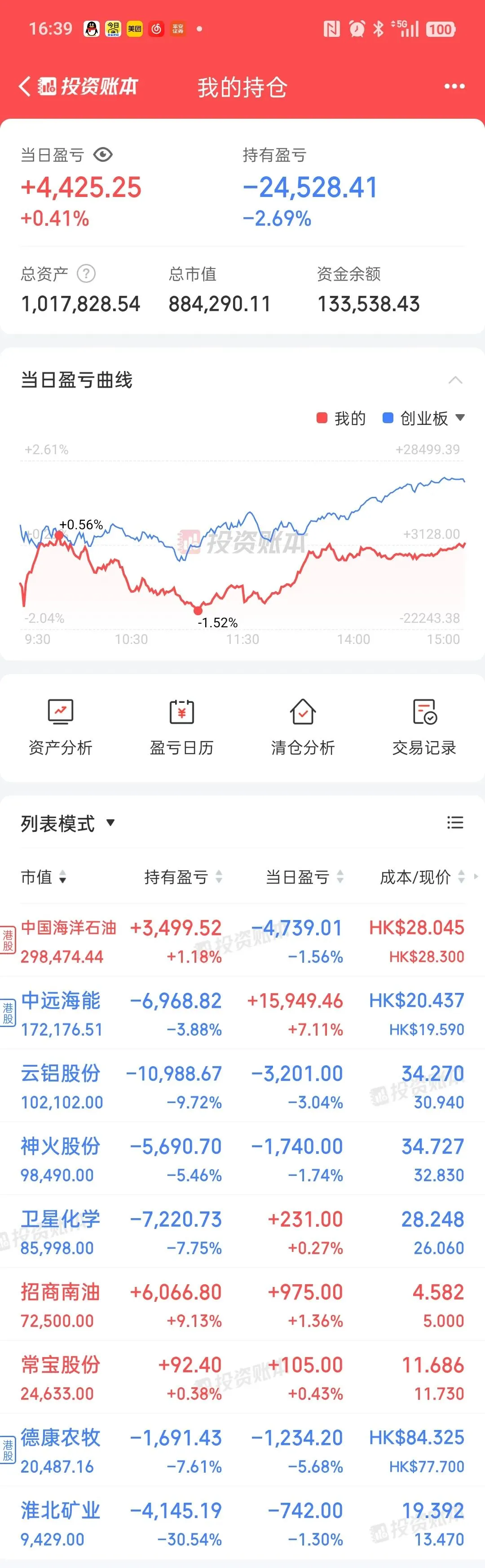 仓位: 39%(就说一复盘就红)