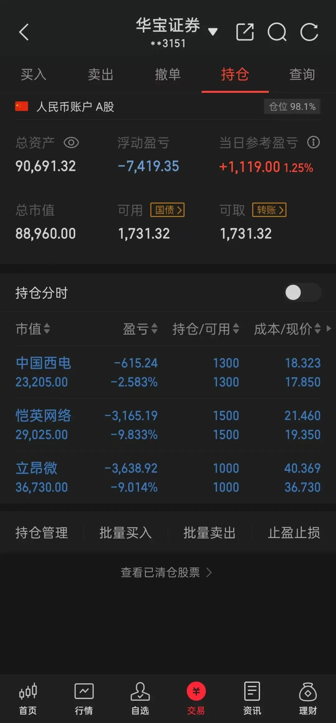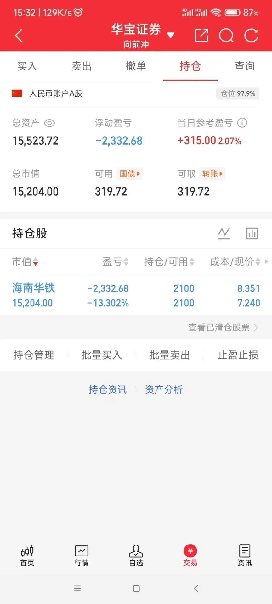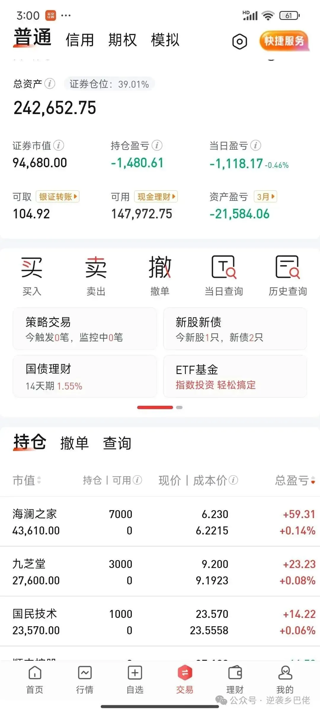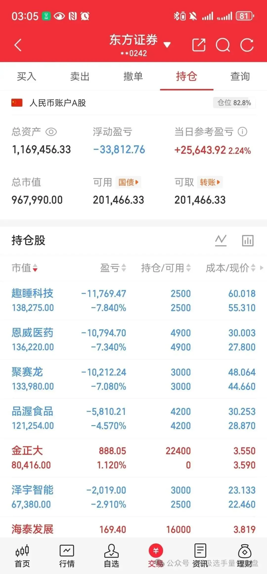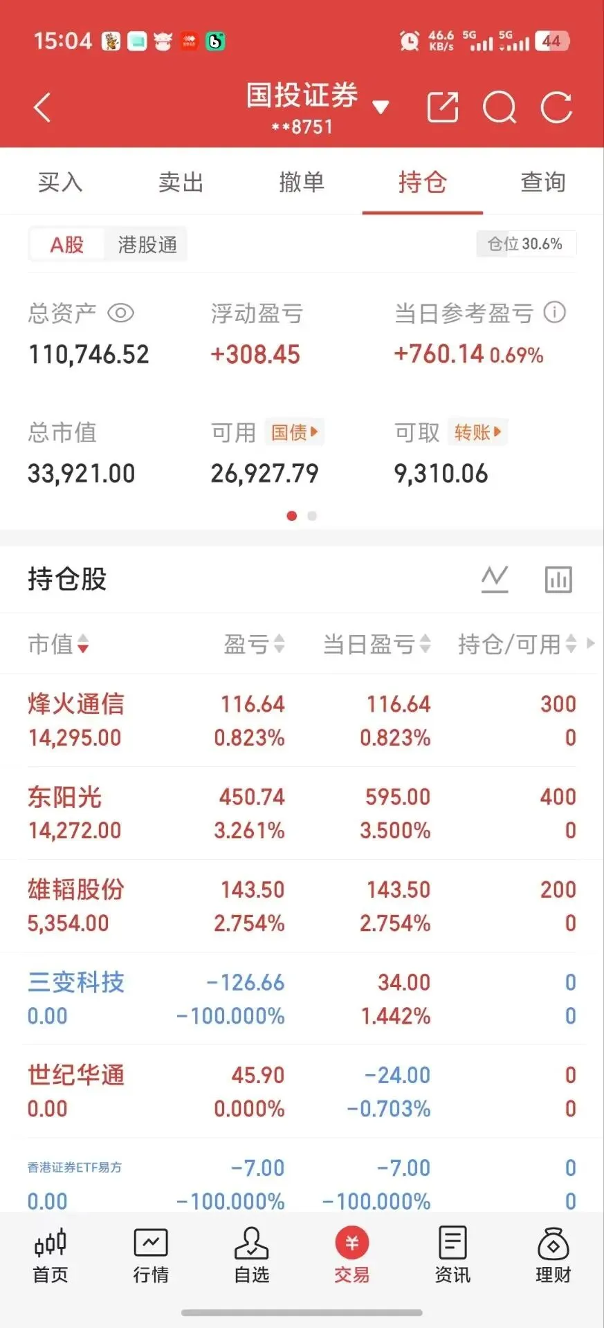 仓位: 39%(就说一复盘就红)