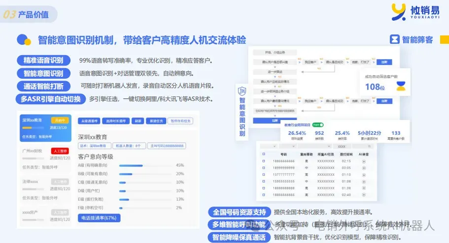 攸销易ai电话外呼机器人的特点和优势: