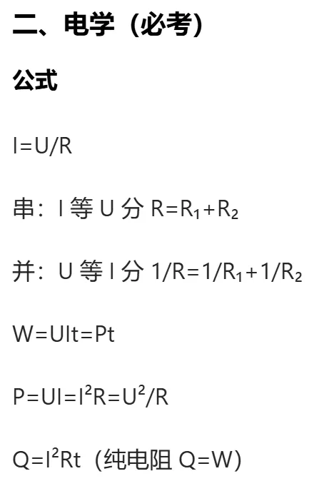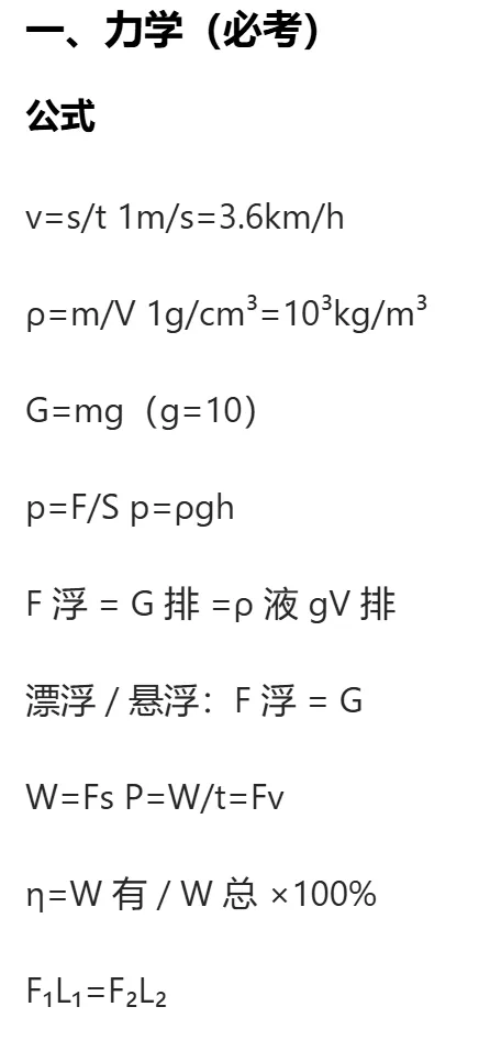 重庆物理中考|一页纸基础知识精简背诵版(可直接打印)