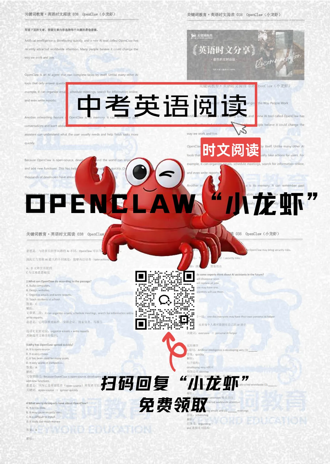 立即扫码添加关键词升学状元君,获取《AI助手OpenClaw正在改变人们的工作方式》英文时文阅读材料包