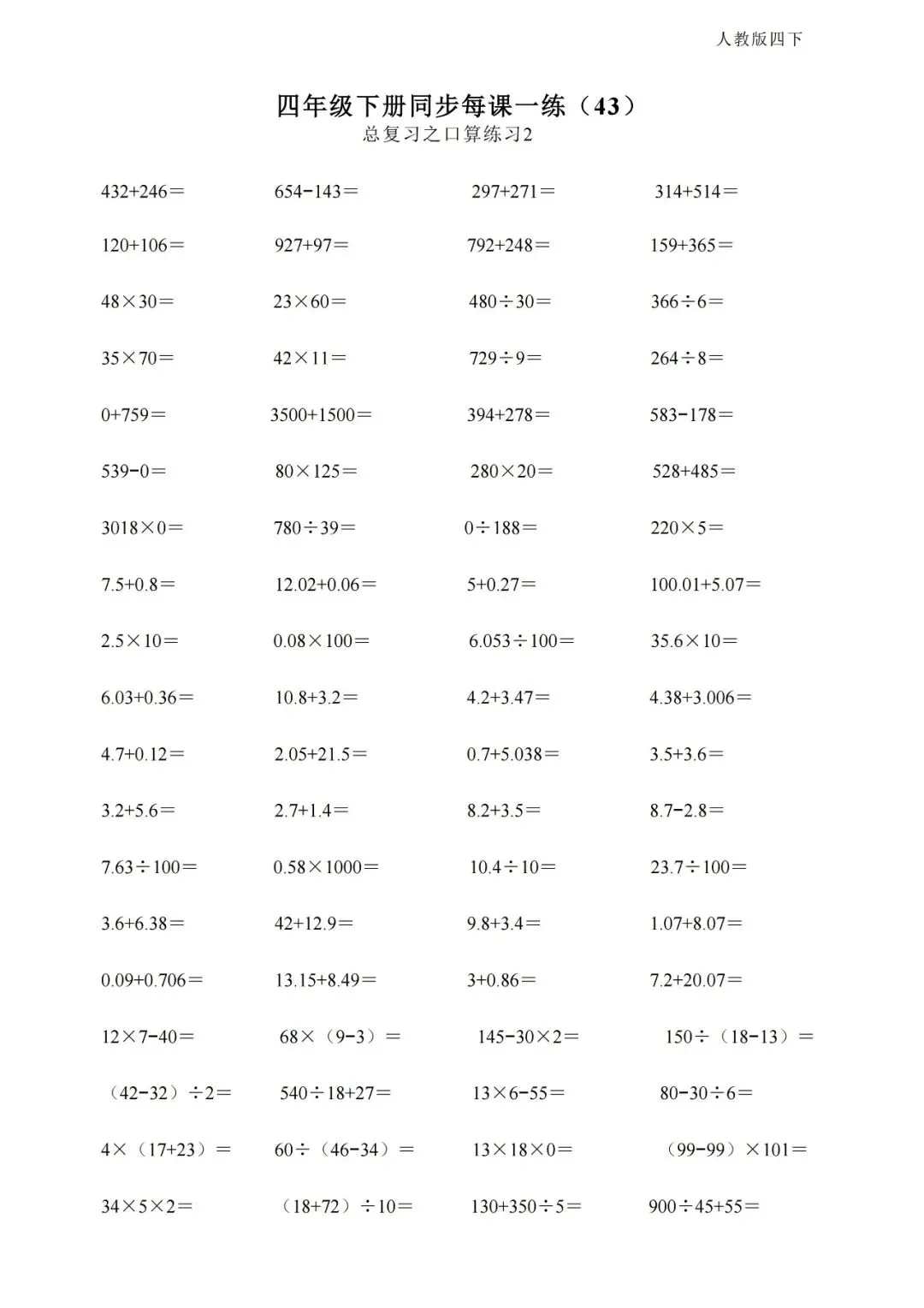 四下 数学跟课每日计算完整版50页.pdf