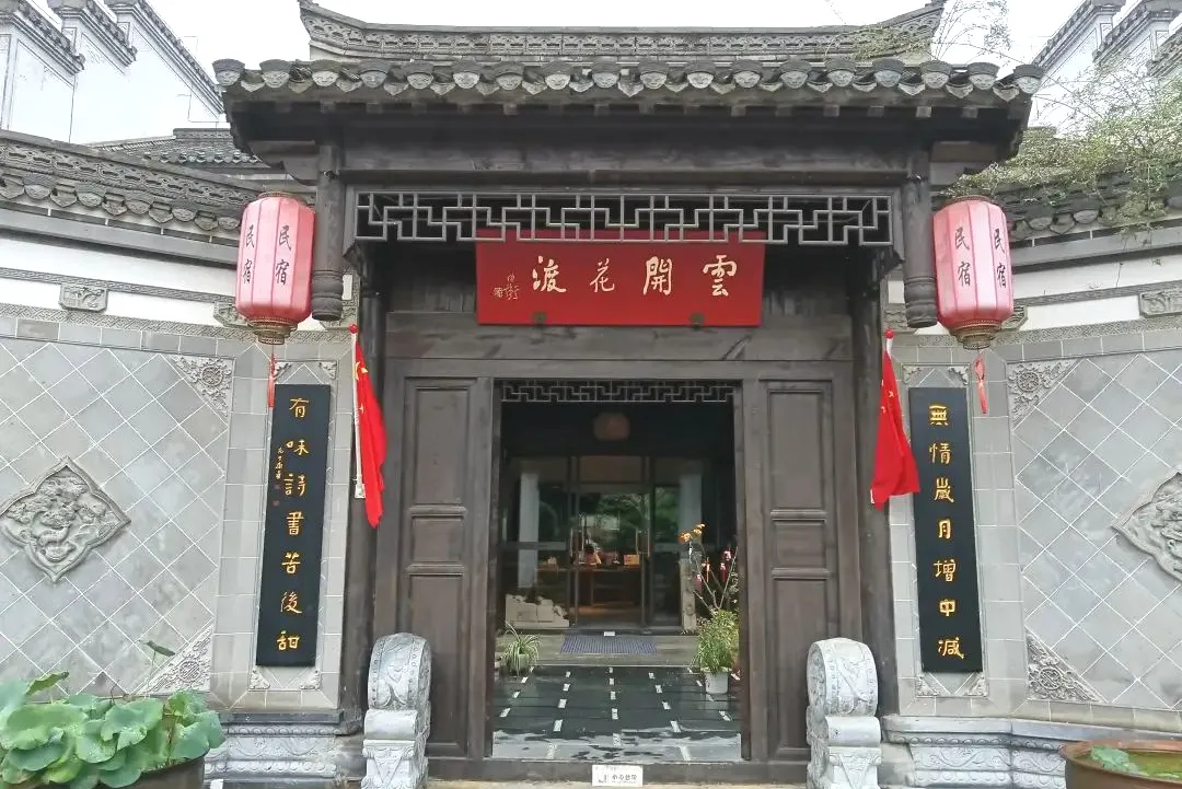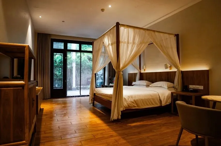 皖美银牌民宿,融合徽派与现代风格。提供汉服租赁、茶艺课堂等文化体验,设有独立茶室与私汤泡池,主打静谧疗愈体验。