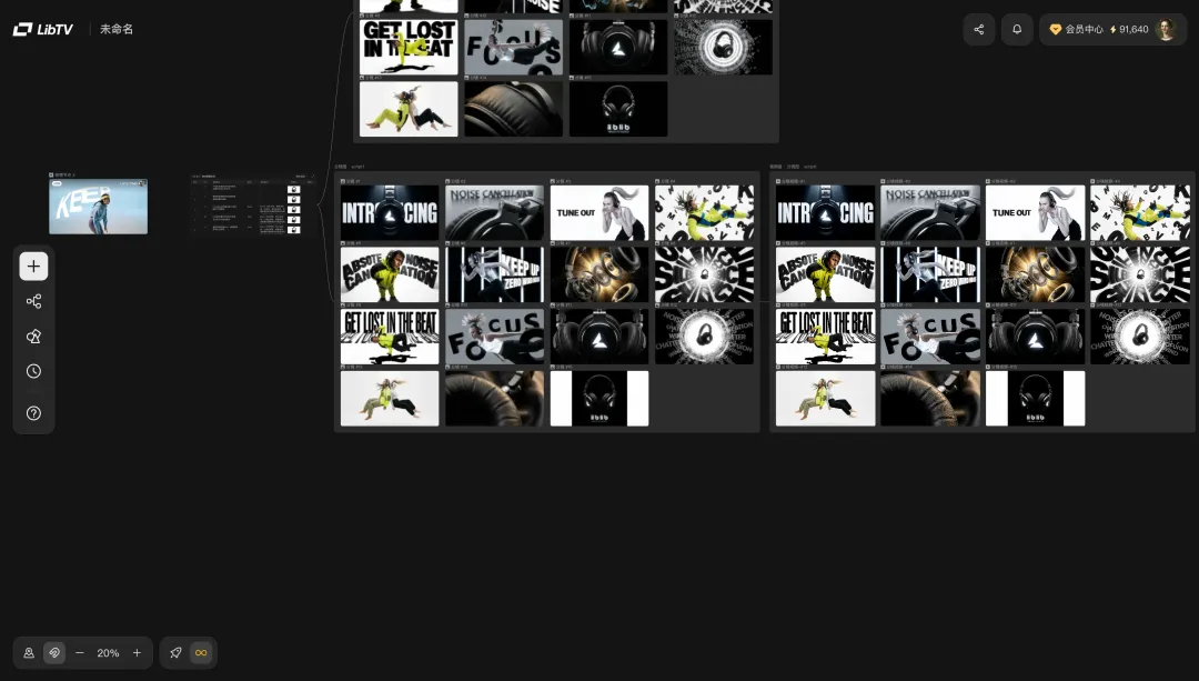 整个创作过程完全在LibTV的无限画布上展开,LibTV支持通过描述剧情,或者上传剧本、角色图像、参考视频,直接生成脚本,并通过脚本直接批量生成分镜图和视频。