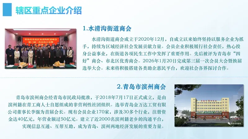 北商加油站 | 市北招商资源导览(一)——水清沟街道招商资源 为助力企业精准匹配优质发展空间,全面展现市北区投资机遇,即日起,“北商加油站”正式推出「市北招商资源导览」系列。我们将逐一走进各街道,深入推介区域产业基础、空间载体与营商环境。这里呈现的不仅是详实的资源清单,更是市北区携手企业共谋发展的“未来共建邀请函”。诚邀广大企业家朋友持续关注,与我们一道,将擘画的蓝图落地为繁荣的实景。 「水清沟街道招商资源」