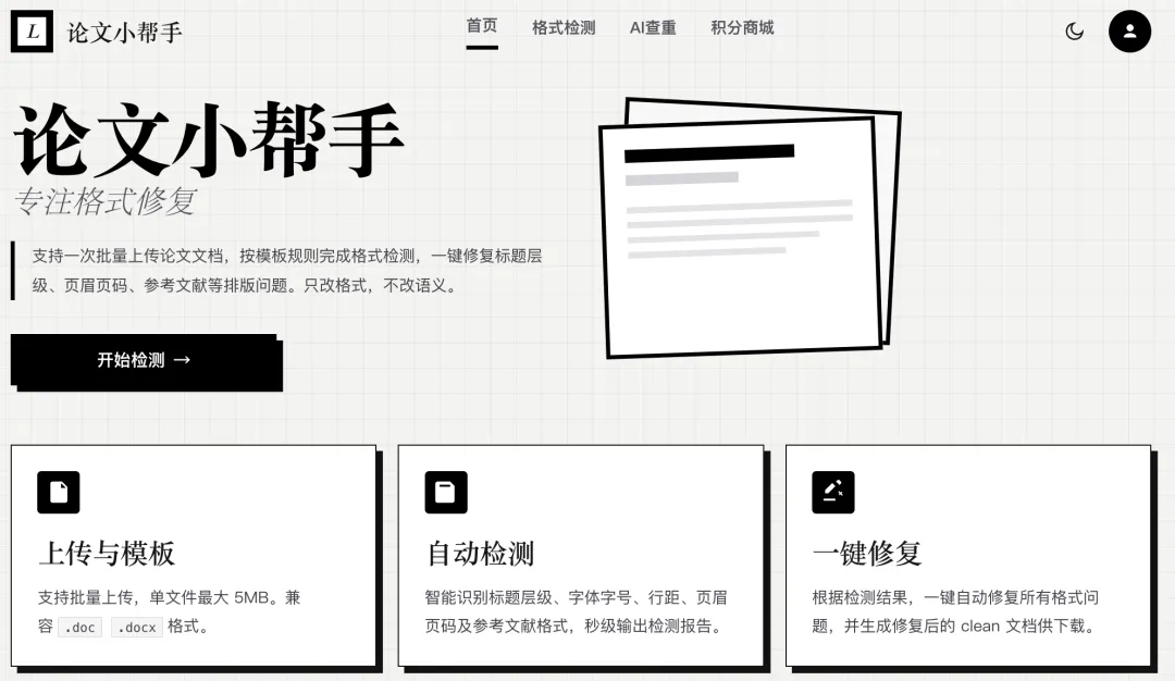 我想做的,不是“替你写论文”,而是把最机械、最耗时的格式工作交给AI工具完成:先检测,再定位,再修复。你可以把它理解为一个专门服务论文交稿阶段的“格式质检助手”。