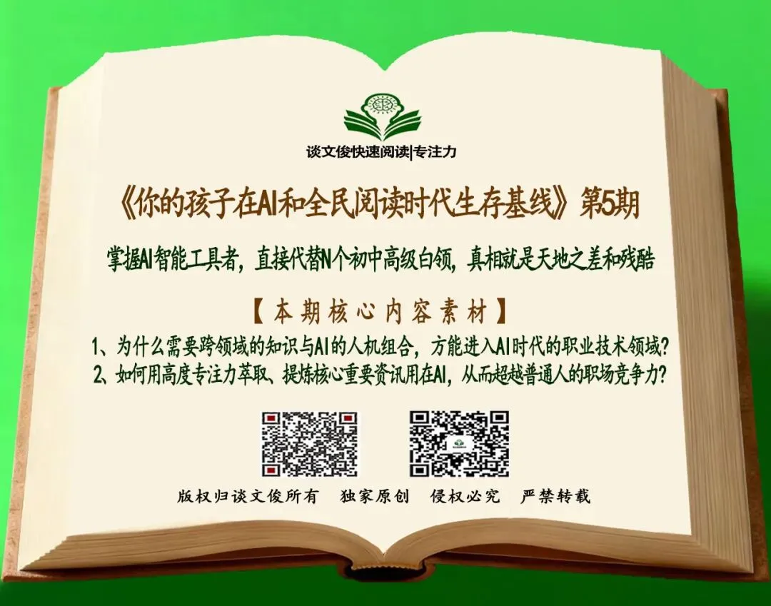 【你的孩子在AI和全民阅读时代生存基线第5期】掌握AI智能工具者,直接代替N个初中高级白领,真相就是天地之差和残酷