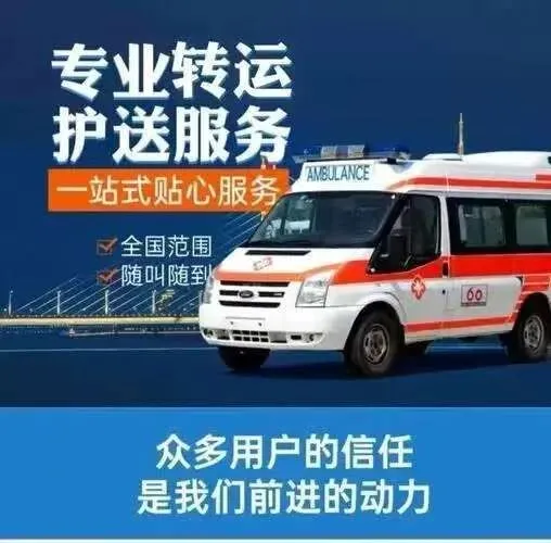 我们是救护车出租转运公司,120救护车接送病人预约护送。24小时为术后康复、危重患者及跨区域就医人群提供专业医疗转运服务,提供120救护车转运出租‖私人120救护车(非急救)‖跨省长途转运‖危重病人转运‖市内转运‖术后康复病人转运‖高铁病人转运‖患者返乡‖大型活动赛事保障‖配备ICU设备:呼吸机▪心电监护仪▪吸痰器•微量泵•氧气▪急救药箱▪专业医护团队