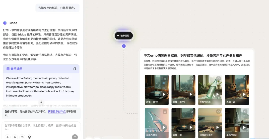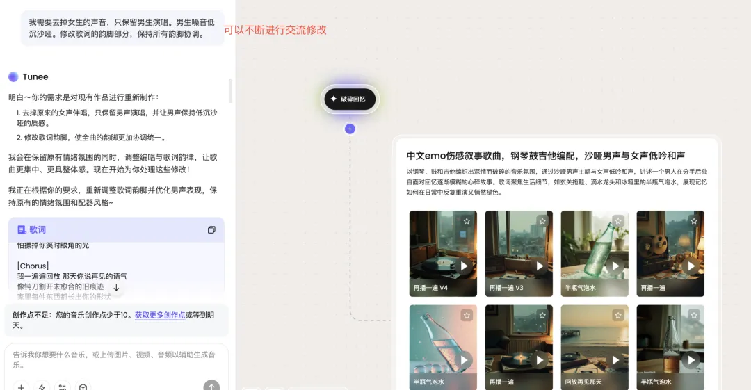 (🌟TUNEE最大的问题就是,每一次修改以及生成都是全新的一首歌,没有办法修改其中的细节!!!)