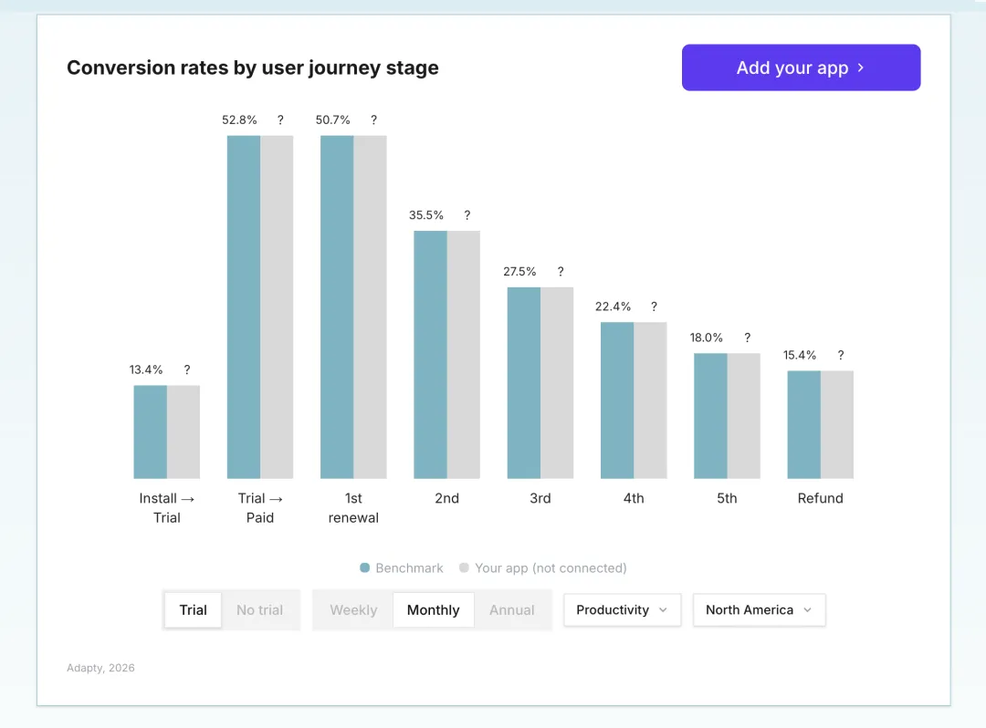 视觉调整是最难取得胜利的测试。你只是移动了已经在上游做出决定的像素点。真正能影响用户生命周期价值(LTV)的,是结构性的设计:这个订阅计划是否有试用?我展示了多少选项?付费墙在应用中出现的位置?这些看起来像无聊的基础设施决策,但它们才是变动最大的地方。