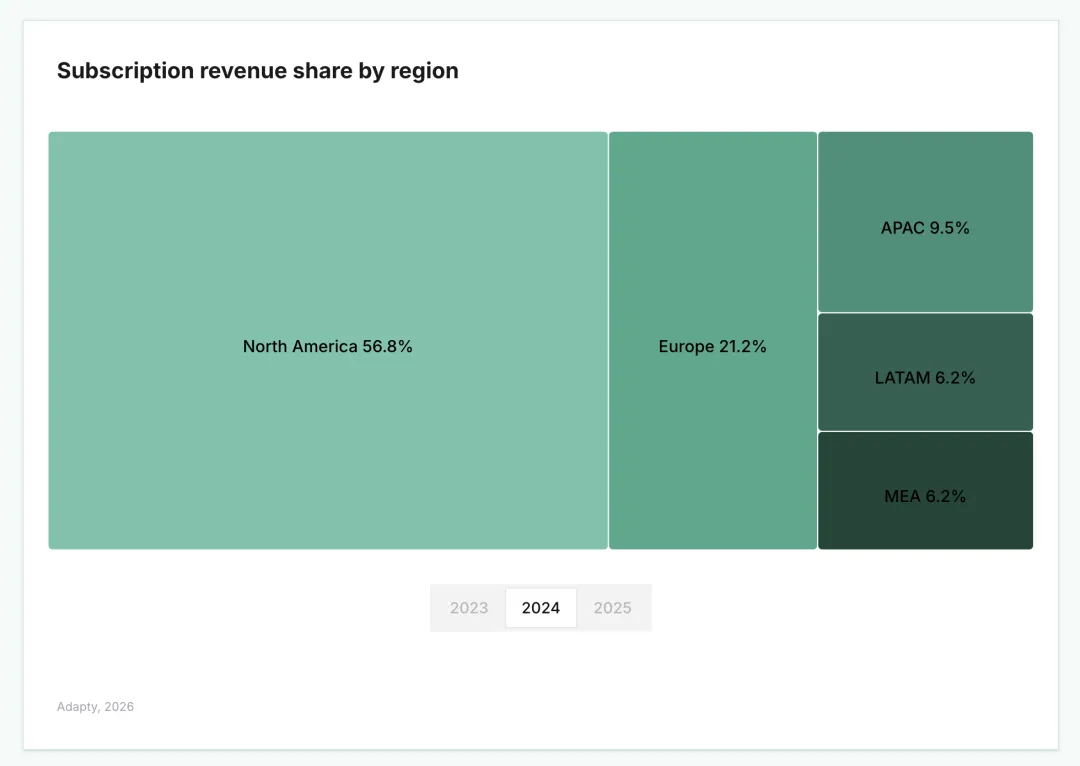 1. 北美的份额自 2023 年以来下降了 3 个百分点;欧洲则保持稳定。