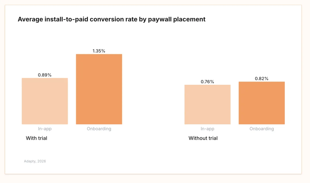 带试用的引导式付费墙(onboarding paywalls)转化率最高