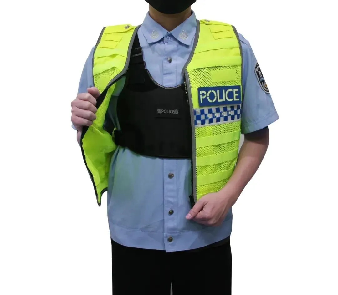 该背心内置防刺内芯,按照公安部《GA68-2019警用防刺服》B类执行标准制作,具备重量轻、防刺性能高等特点,可有效阻止尖刀、利刃的割、砍、刺,在关键时刻保护民警人身安全。