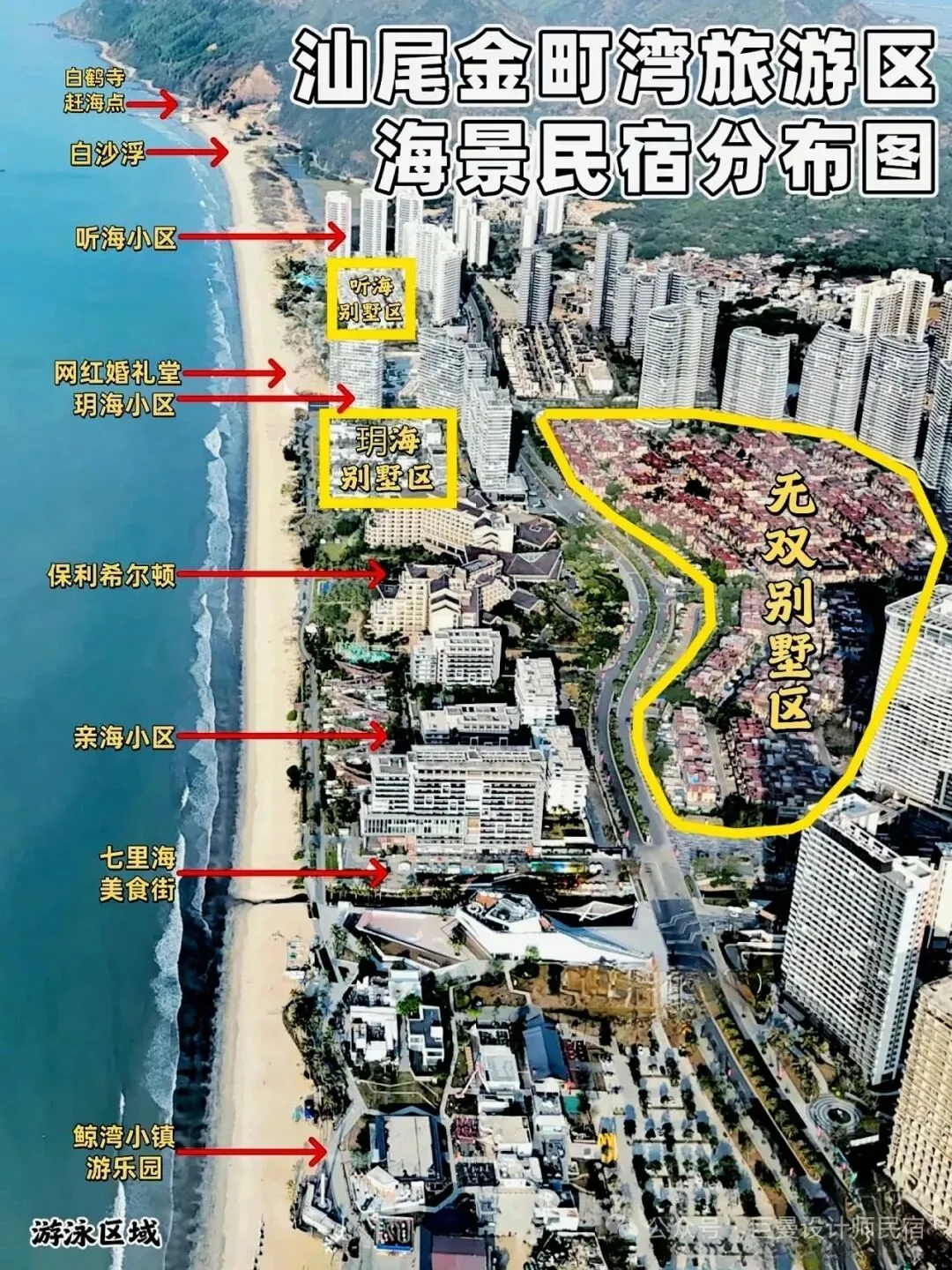 【巨曼设计师民宿】是2026年汕尾保利金町湾新上民宿自创品牌,目前旗下共有5套近海别墅,分别位于汕尾保利金町湾无双墅A/B区、玥海小区和天奕小区: