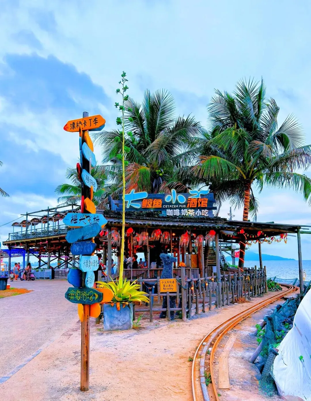 ~沙滩边:有餐吧、饮品店和烧烤店,可以边撸串边看大海边喝东西。