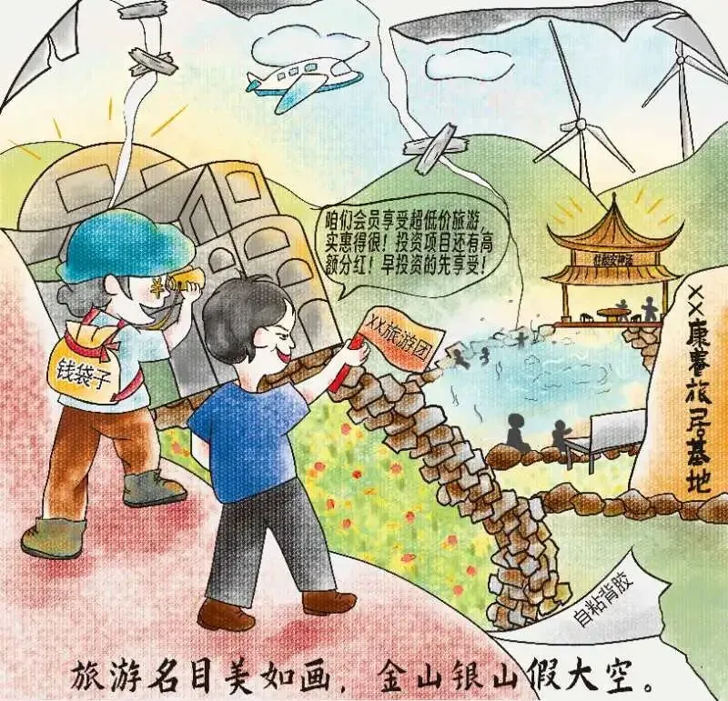 近年来,一些不法机构打着“旅游业务”的幌子非法吸收资金,这类骗局一般存在以下几种形式:一是“会员卡游”。以成为会员等名义吸收资金,承诺消费者交纳会费后可享受免费旅游或低成本旅游,并定期给予分红,消费者如不参加旅游,可按照该旅游项目的标价获得超额退款。二是“投资项目游”。以投资、加盟、入股旅游项目等名义,邀请投资人外出旅游考察项目,与投资人签订协议,宣称协议到期后返还投资人本金并获得高收益。三是“预付款游”。以售卖“旅游套餐”预付款产品的名义,以“低价游”为噱头收取用户预付款,并承诺回购付息。四是“出境保证金游”。以出境游保证金为幌子,收取高额押金、保证金等,提供旅游产品,并承诺给付高息。这类骗局的突出特点还是以高额返利来吸引投资者,广大群众一定要提高防范意识,不要被“新型”旅游项目和服务迷惑。