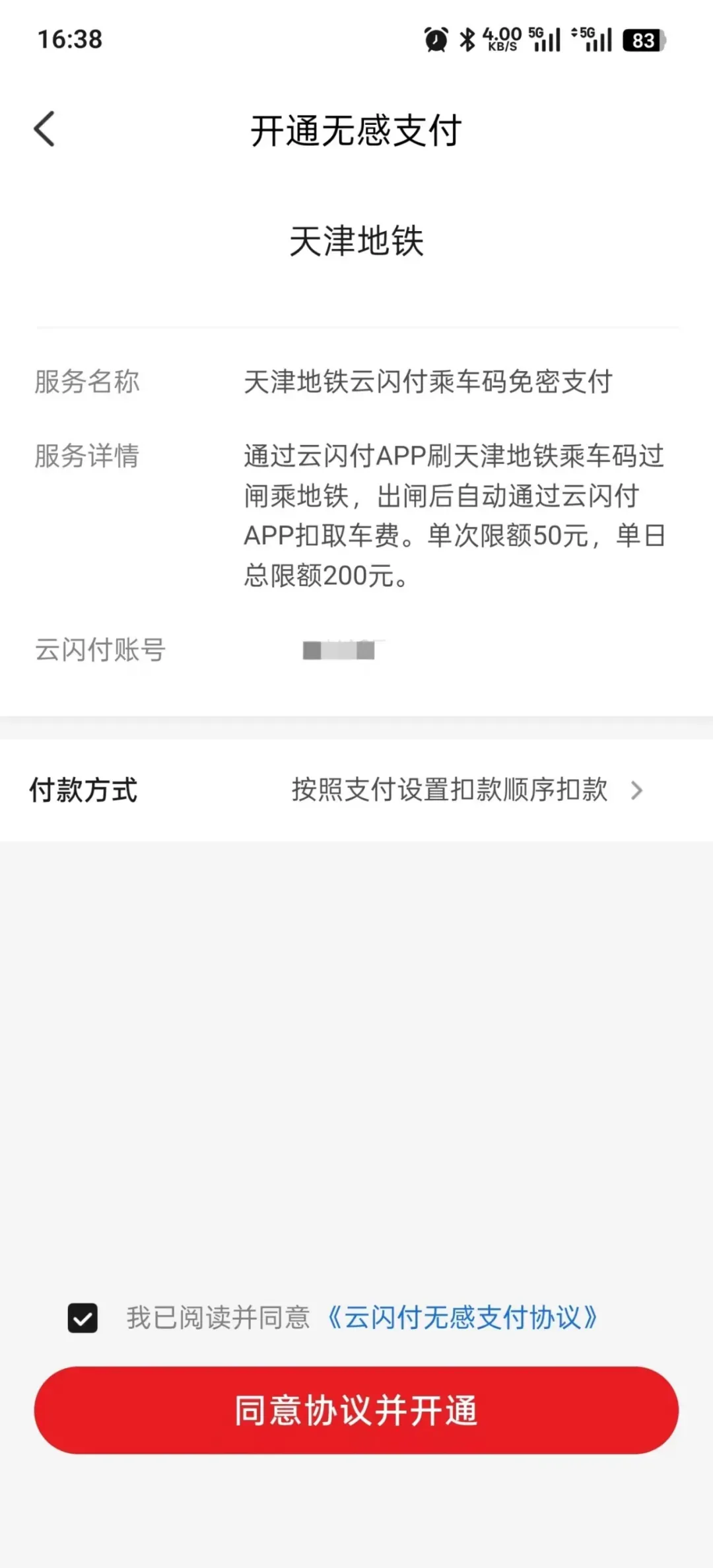 使用“云闪付”APP乘坐天津地铁后,将从“云闪付”APP中进行扣费。