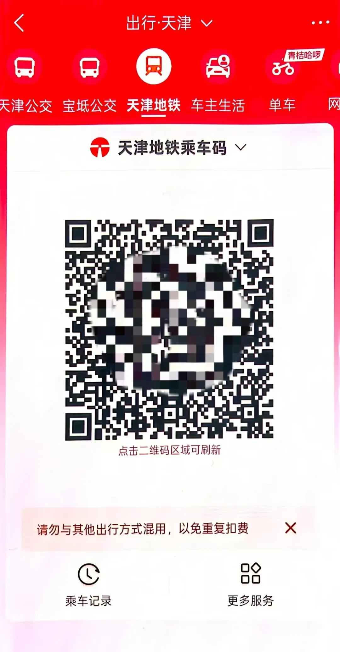 请勿将天津地铁乘车码截屏或者拍照给他人使用,由此产生的资金风险将由您本人承担。
