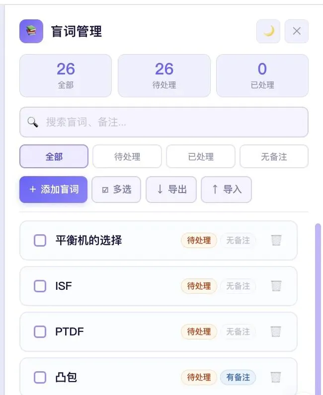 前段时间,Vibe了一个浏览器插件,名称叫做盲词管理。
