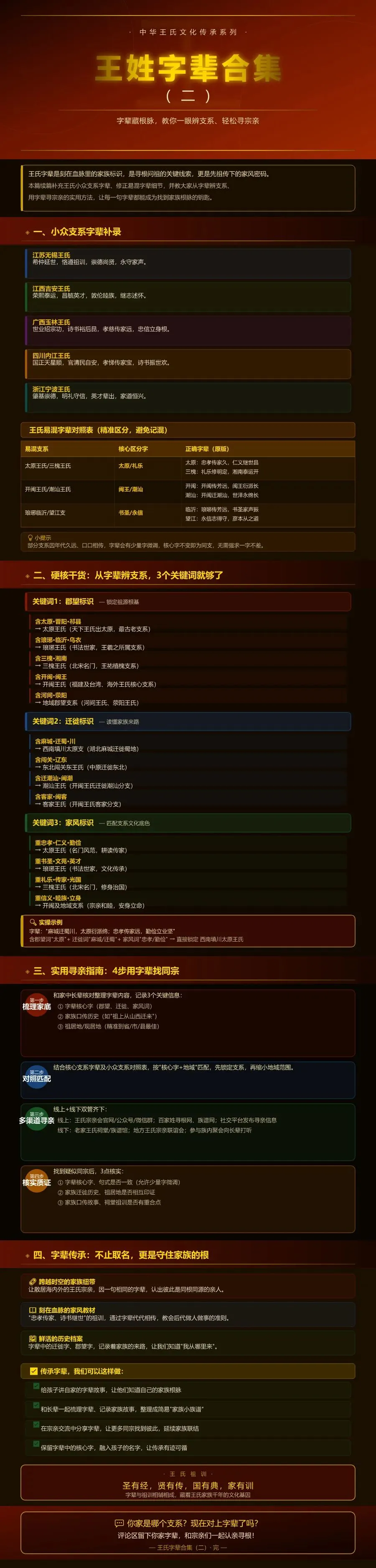 王姓字辈合集(二):字辈藏根脉,教你一眼辨支系、轻松寻宗亲