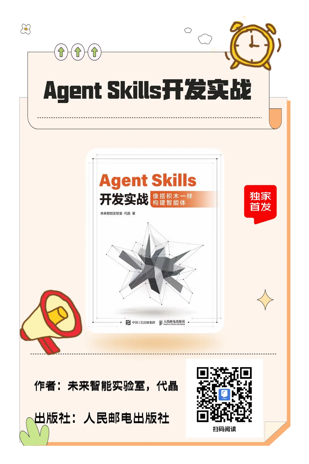 不同于侧重理论的AI书籍,本书全程围绕可落地展开,所有知识点都配套具体的操作规范、代码示例与场景演示,快速上手,现学现用。针对Token成本高、知识难复用、执行不可控等实际问题,本书给出了渐进式披露、三级加载、安全沙箱等可直接落地的技术方案,帮助企业降低AI开发成本,提升业务执行效率。从认知建立到开发、测试、部署,再到实战落地与跨工具扩展,本书覆盖了Agent Skills开发的全流程,形成了一套可复用、可复制的工程化方法论,无论是个人开发者还是企业团队,都能从中获得价值。