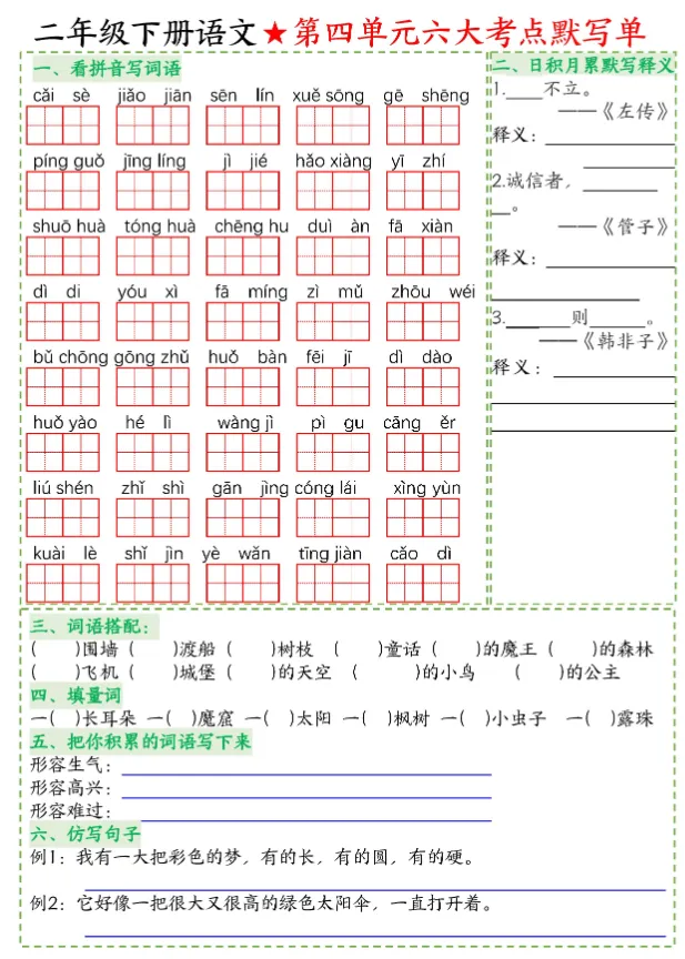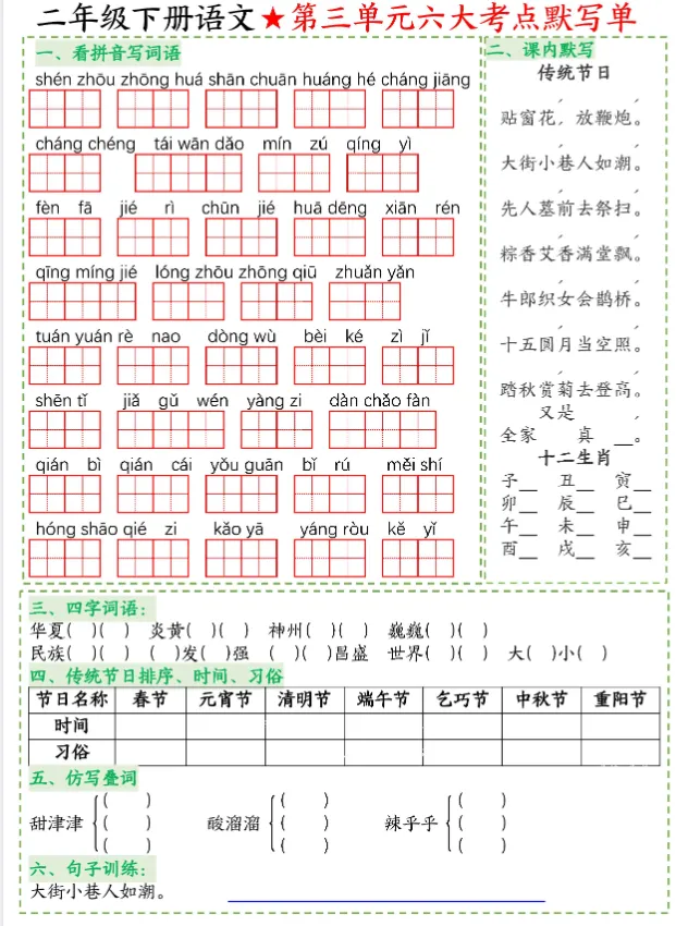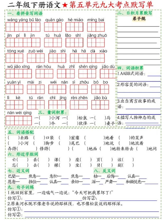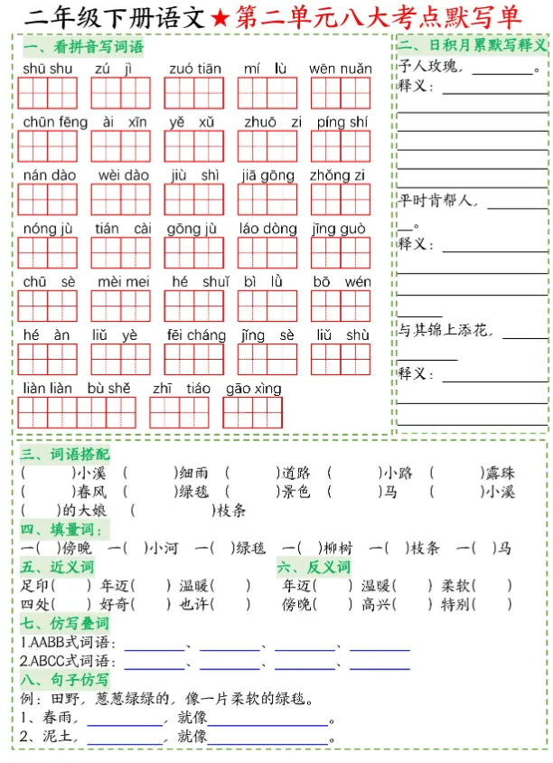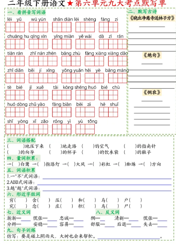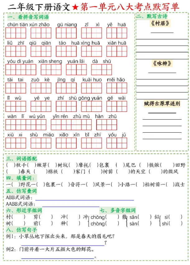 2026春二(下)语文专项-考点默写【可下载电子版】