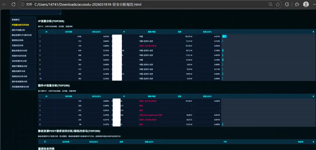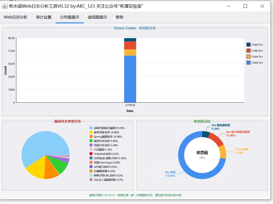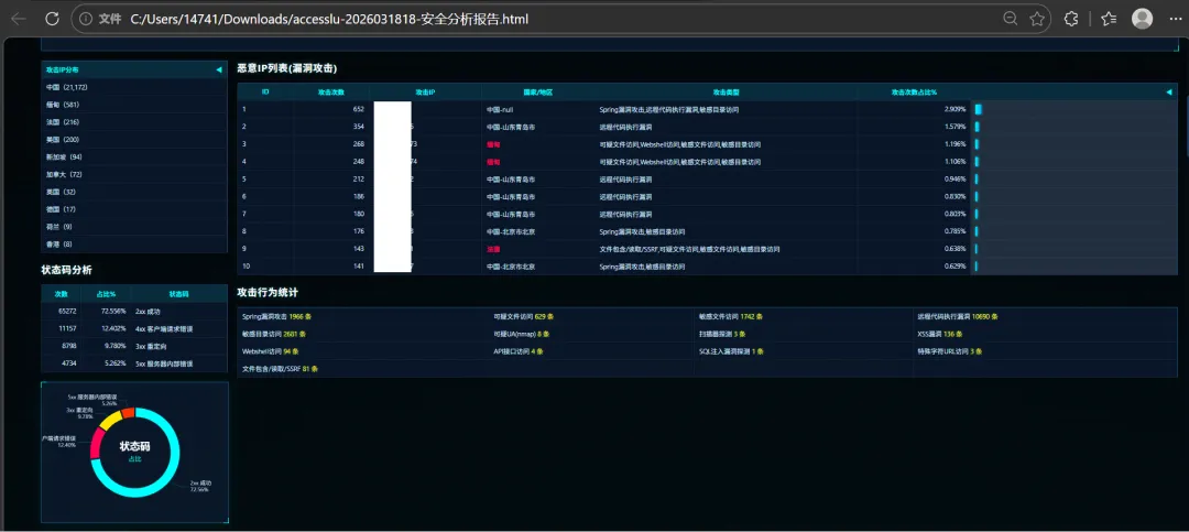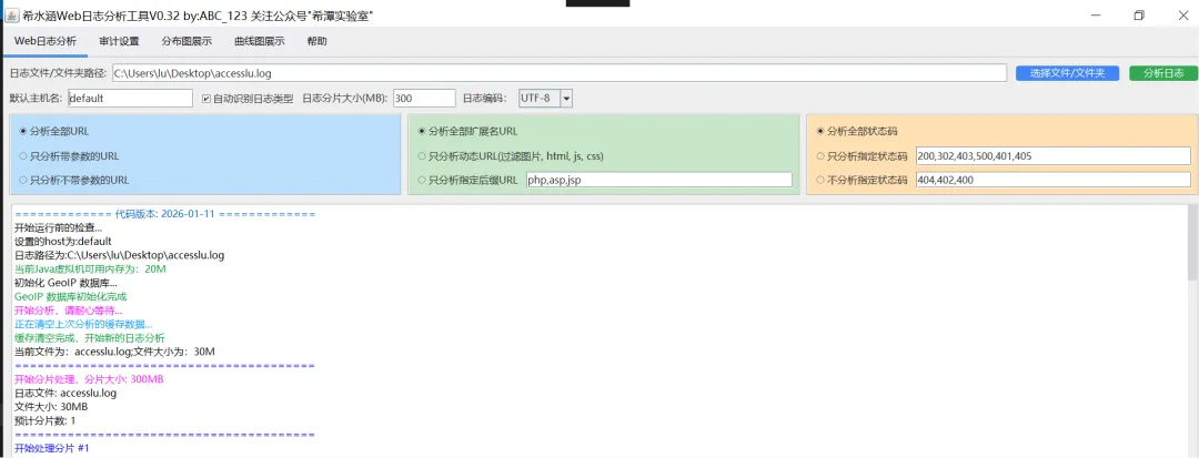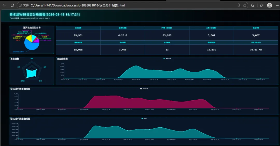 大家好,今天给大家分享一款实操性超强的希水涵Web日志分析工具V0.32,主打轻量化、免安装、一键生成可视化日志分析报告,适配Nginx、Tomcat、IIS等主流Web服务器日志,特别适合网安运维、蓝队小伙伴日常日志溯源、异常检测、流量统计使用。