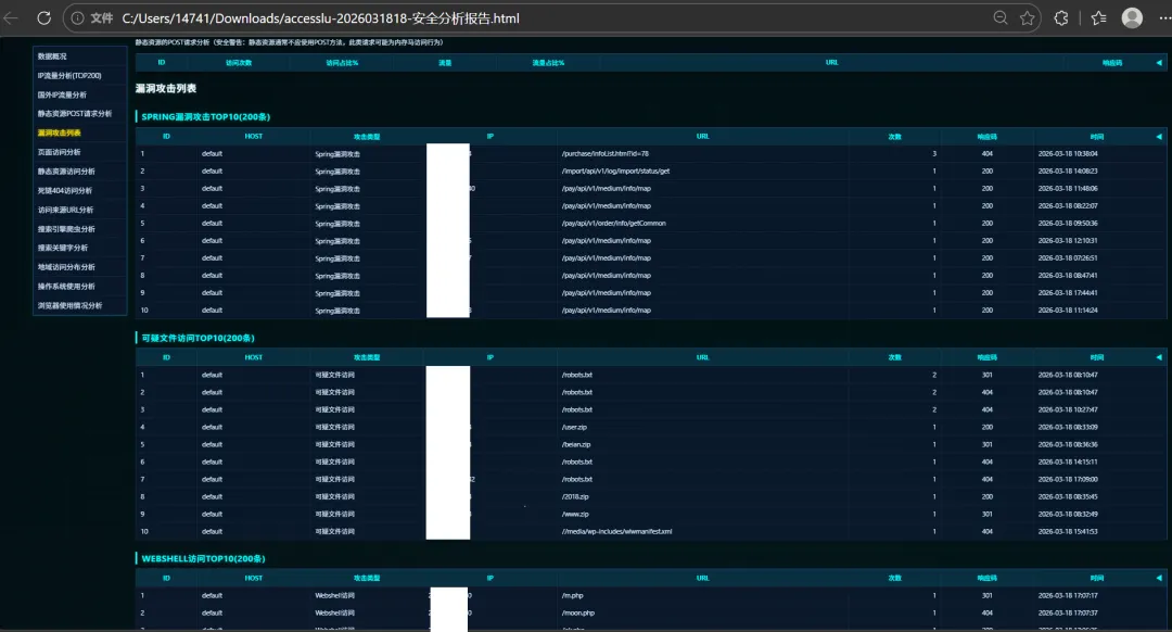 这款工具对于日常运维和网安排查来说,实用性真的拉满,不用再对着密密麻麻的日志手动翻找,几分钟就能出完整分析报告,新手也能快速上手。