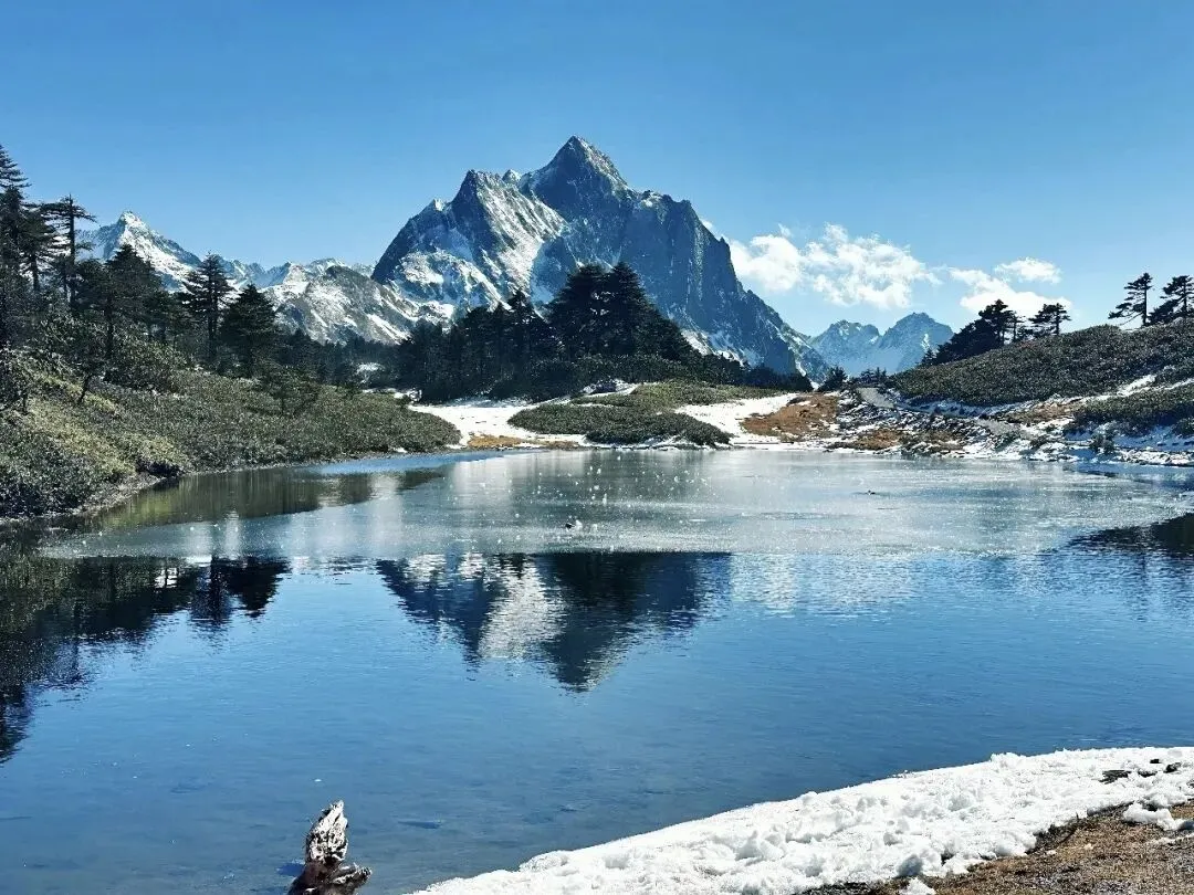 四月的孔雀山,冰雪初融,杜鹃怒放。沿着德贡公路进入秘境,天心十二湖如蓝宝石散落,湖边的杜鹃林正值盛花期,粉白相间的花海倒映在湖水中,美得像莫奈的调色盘,