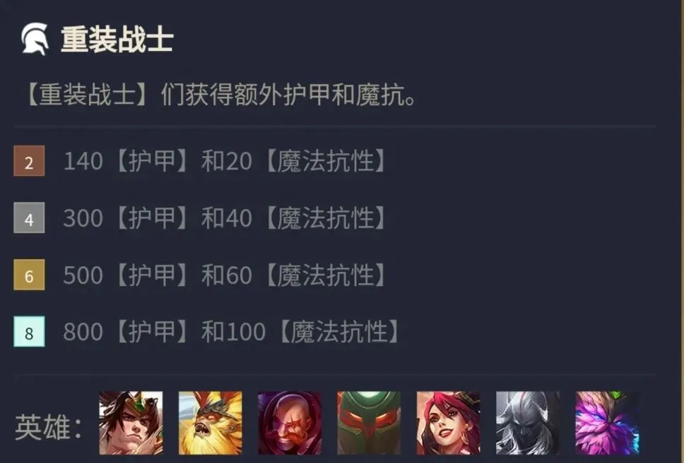 奥恩拥有着重装战士和永恒之森的羁绊,厉害的点就是8重装战士提供了800护甲和100魔抗。高额的护甲魔抗能让我们轻松开启金丹22秒后“真男人”飞升属性,换成其它羁绊,想开出金丹难如登天,而在8重装里,谁带飞升护符,都有近80%概率稳稳开出无敌效果,暴打对手轻松吃鸡。更何况三星以后全屏的“山羊头撞击“你怎么输?