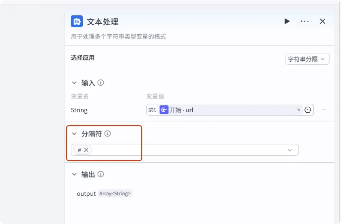 设置参数为开始节点的url参数,分隔符可以自定义为#号