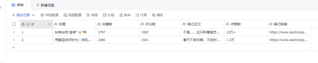 1.2、通过代码以及飞书插件将获取到的笔记信息同步到飞书表格
