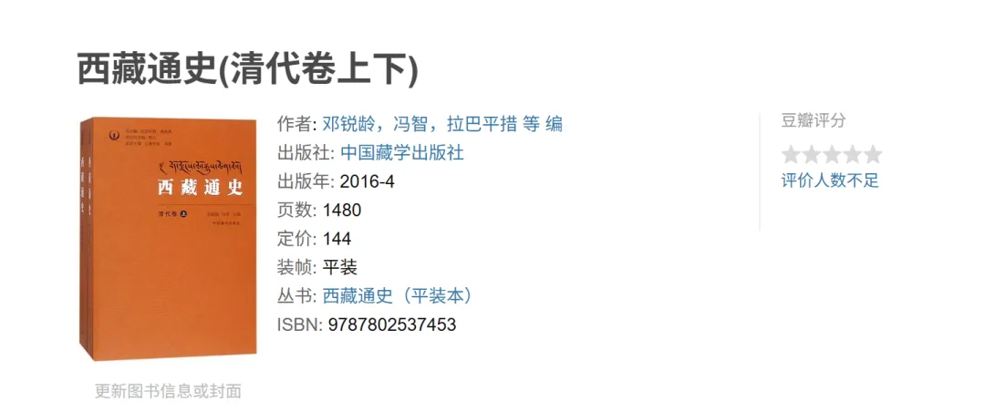 六、《西藏通史(清代卷 套装上下册)》叙述清代1644—1911年西藏地方的历史,分为两编。上编纵向,依年代次序再现重大事件;下编横向,就这段时期西藏政治结构、社会经济、宗教信仰、文化艺术等方面作简要的铺叙。