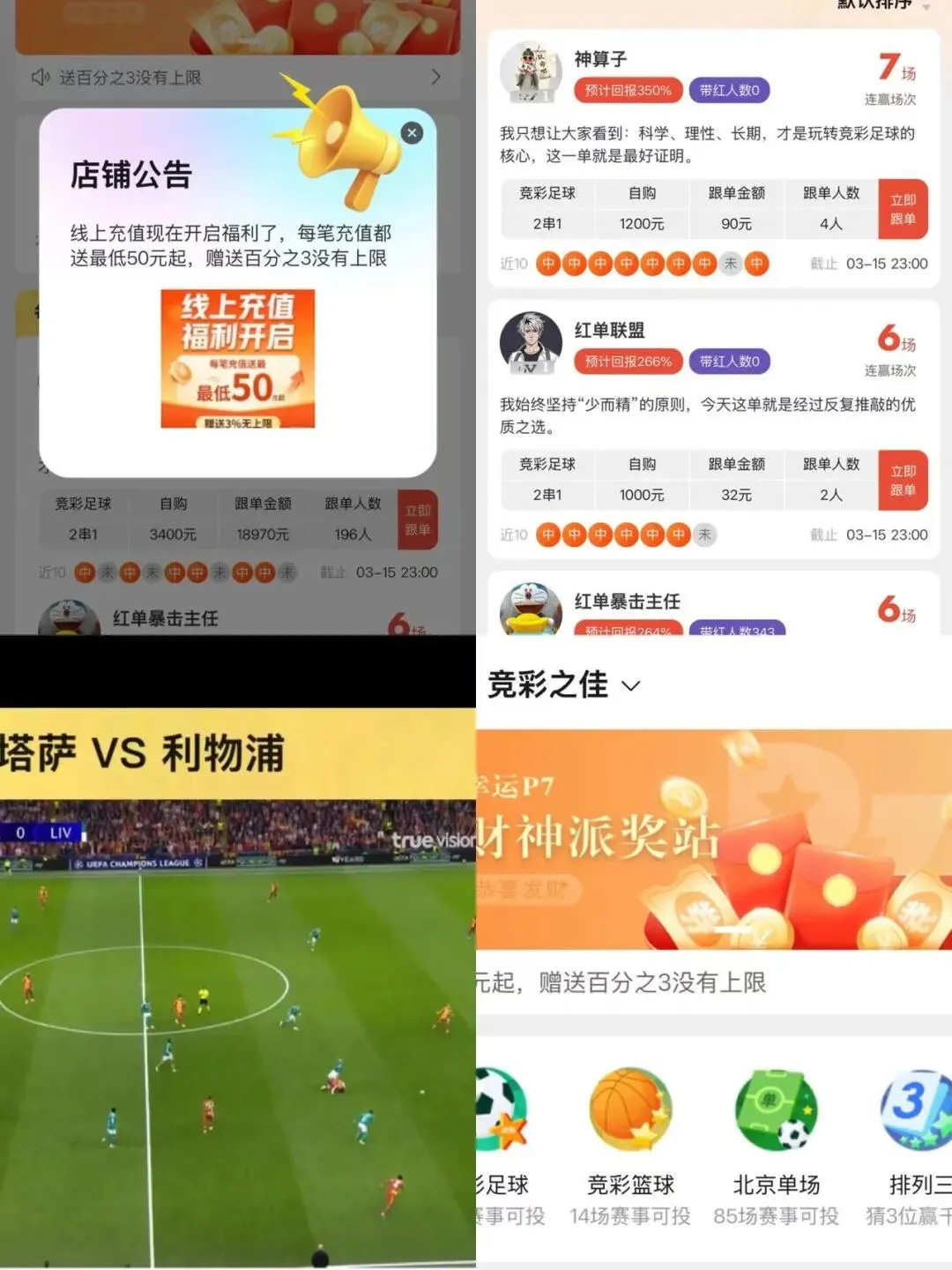 店内每天都有免费的方案推荐,好单多多欢迎大家的前来,目前单子都能保持盈利,希望带各位爱足球的朋友们能有个好的结果!