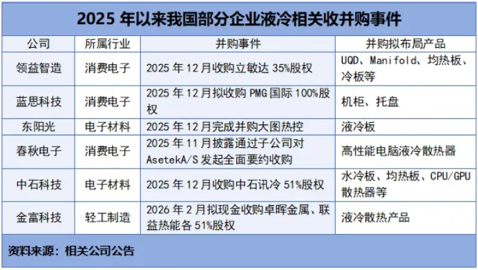 2025年,是我国开启液冷并购的元年,其中不乏蓝思科技、领益智造、东阳光等千亿巨头,也不乏中石科技这样有技术储备的导热材料制造商。