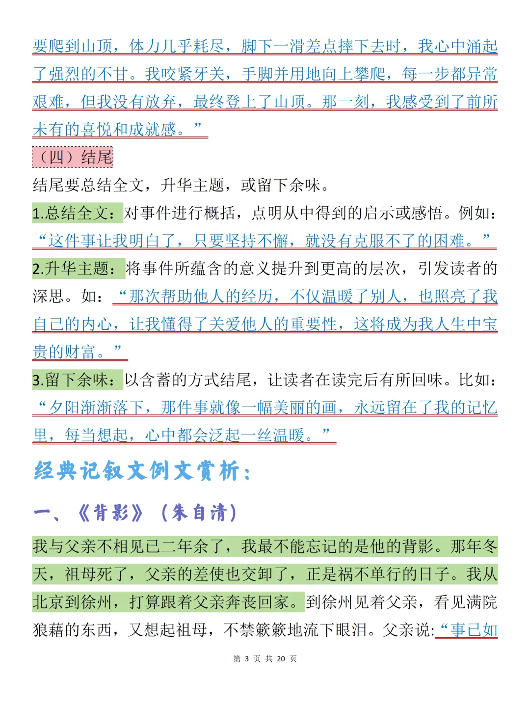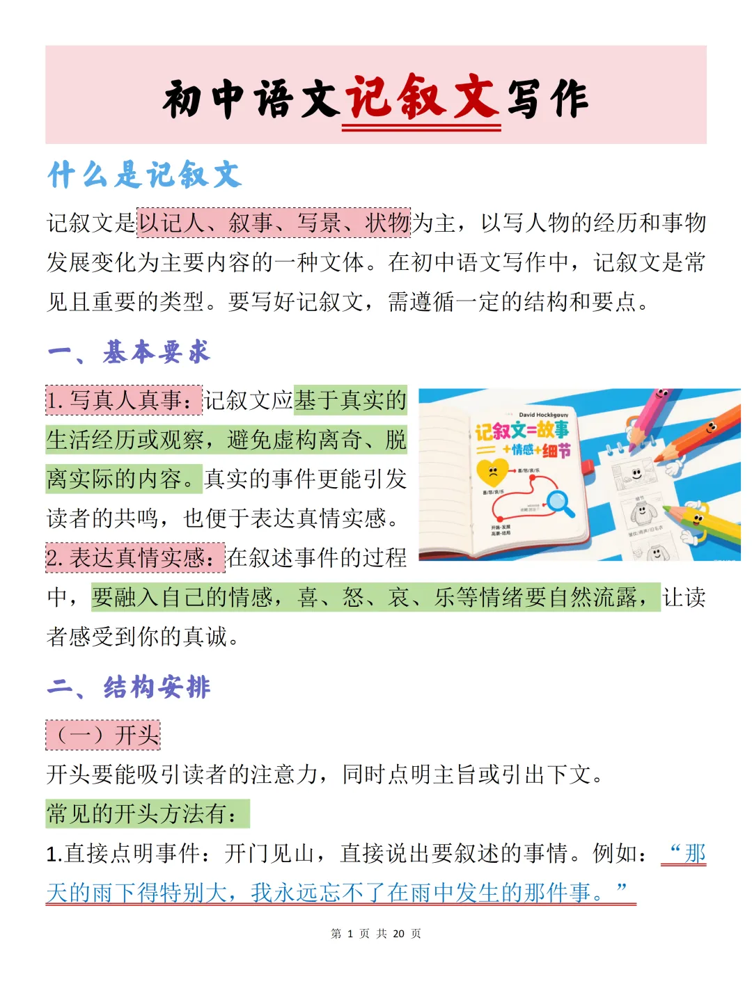 今天给大家整理了中考必备的【初中语文记叙文写作】,覆盖记人、叙事、写景等全场景常考话题,附详细理论分析与经典范文赏析,不管题目如何变式,都能精准应对,轻松拿下高分!