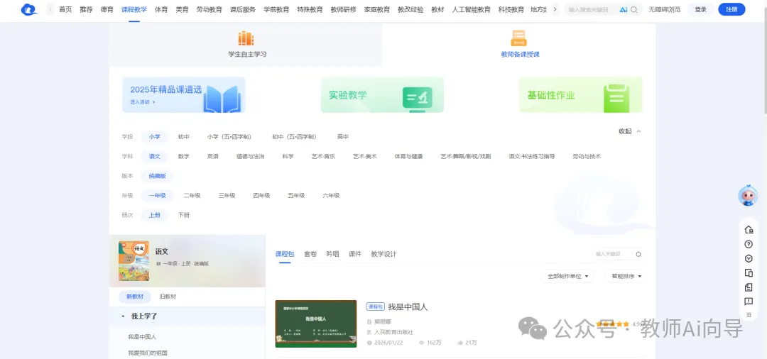 1. 登录并进入课程板块:打开国家中小学智慧教育平台官网或APP,用个人账号登录,在首页点击【课程教学】,选择对应学段(小学/初中/高中)与学科,进入专属页面。