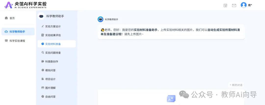 进入平台【人工智能教育工具箱】,选择【央馆AI科学实验】模块。