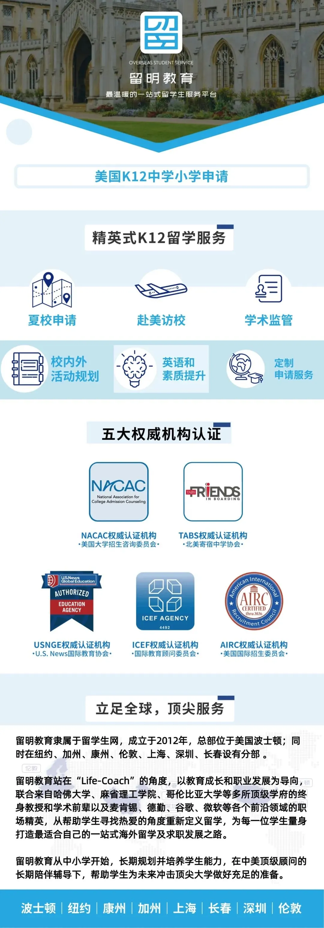在未来的申请季,同时获TABS、AIRC、U.S.News Global Education、ICEF、NACAC五大认证的留学教育服务公司【留学生网留明教育】将继续陪伴大家前行。