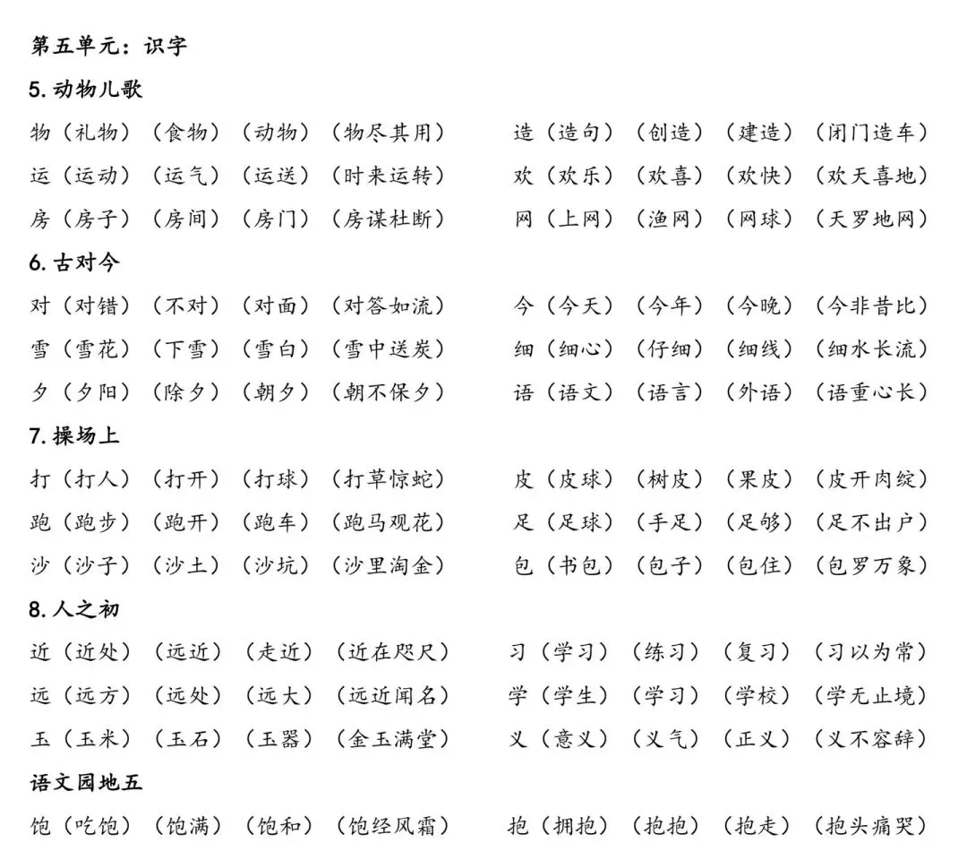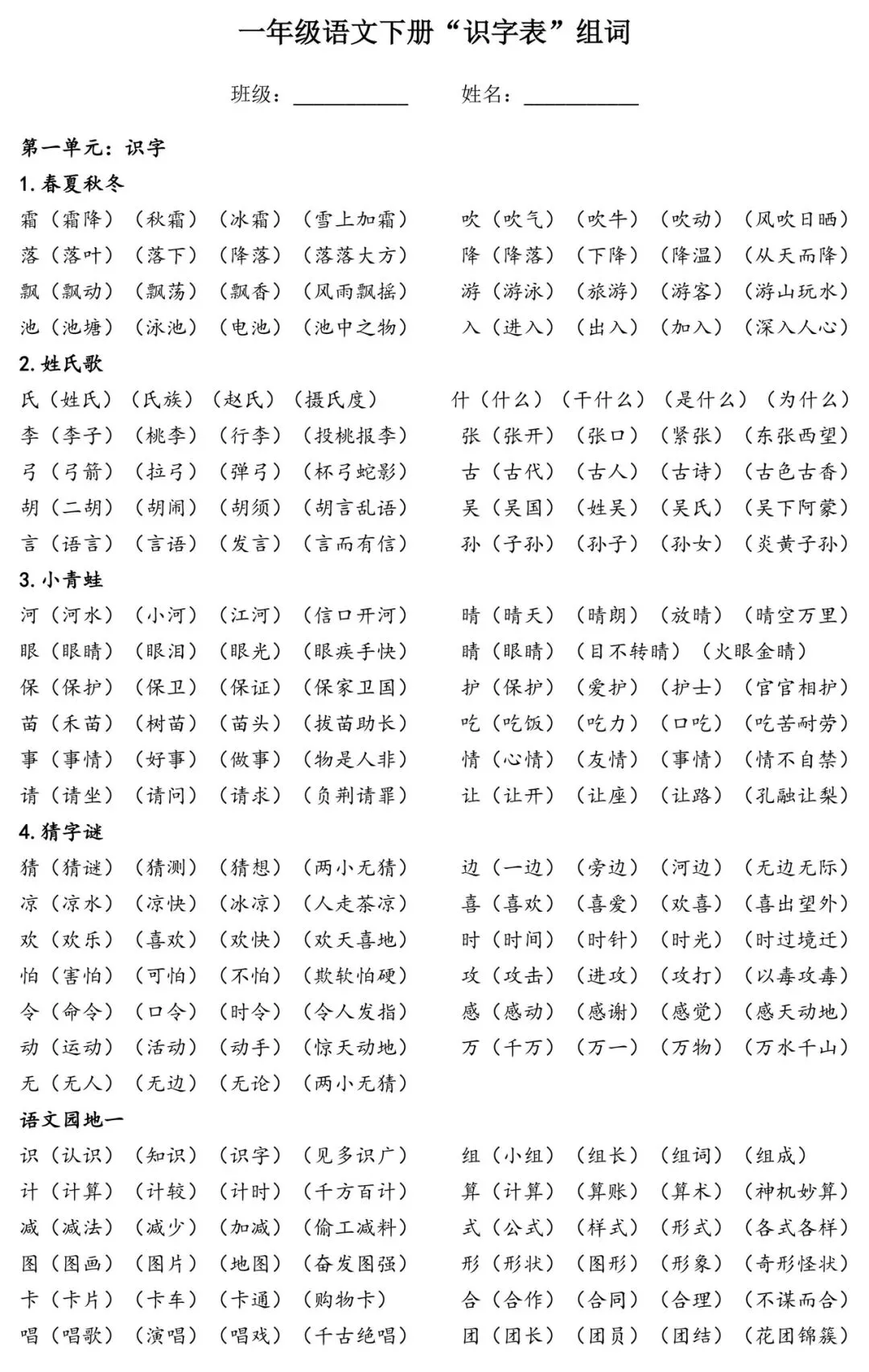 一年级学习|下册语文「识字表」组词,可直接打印,太省心了