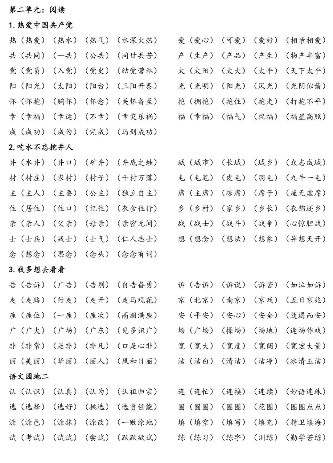 👇下面是完整「识字表」组词表图片,可保存/打印: