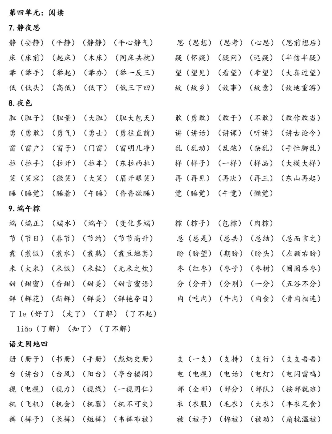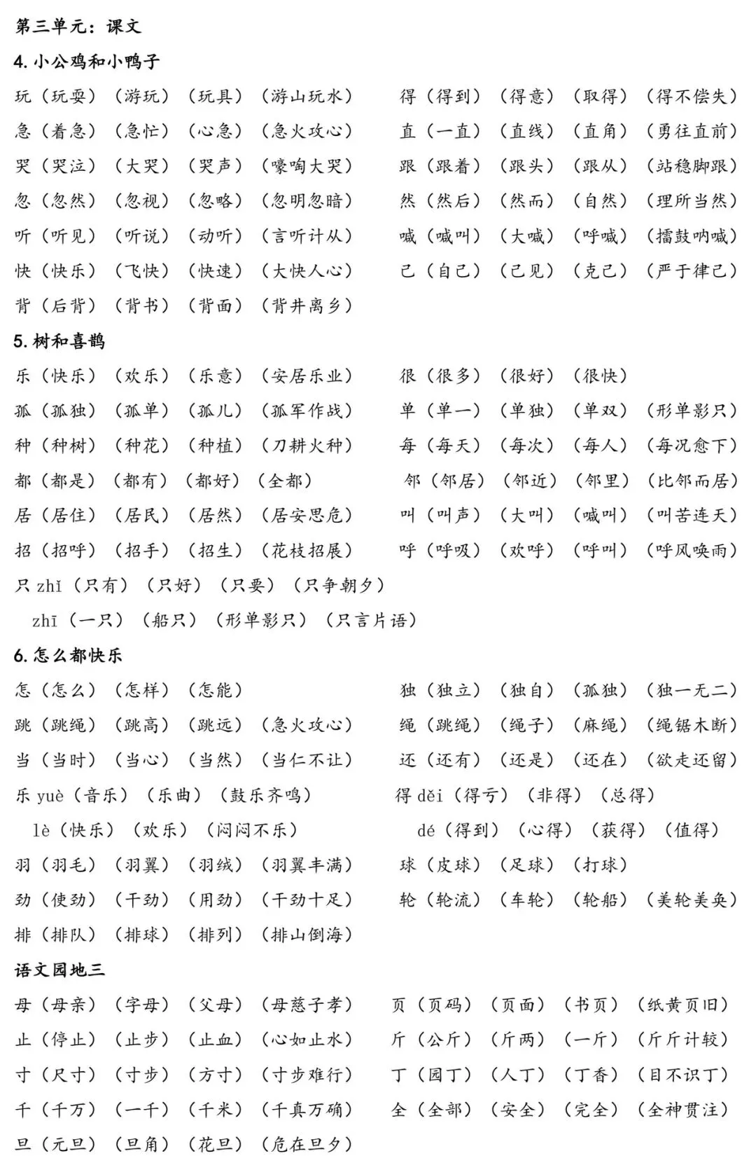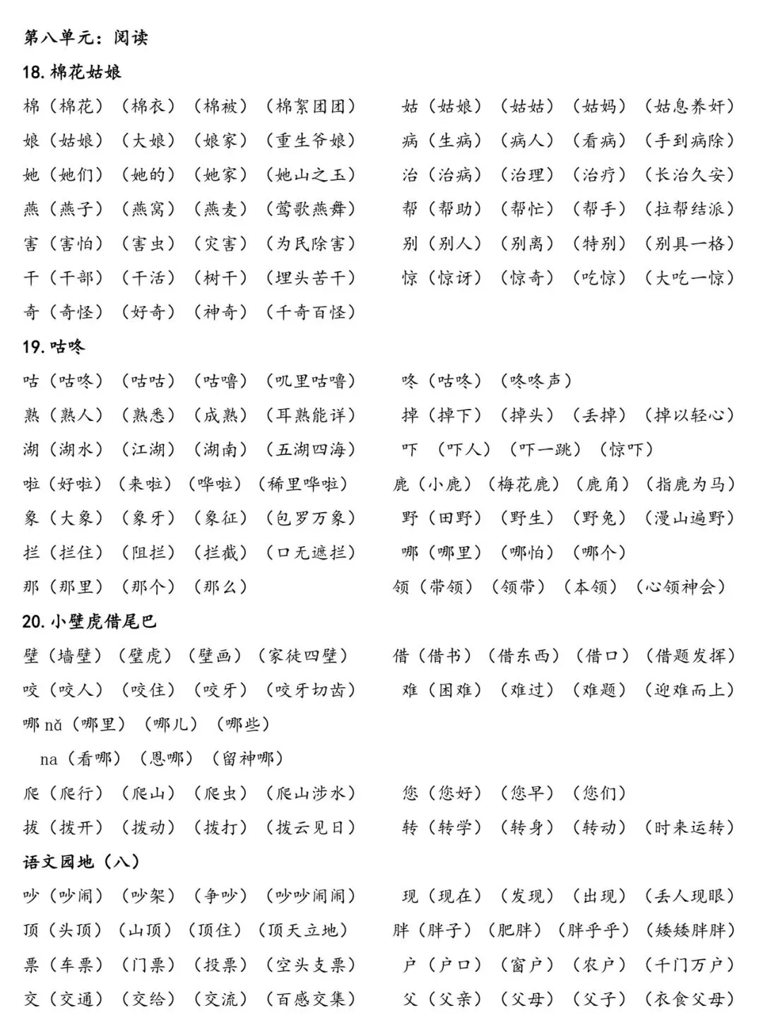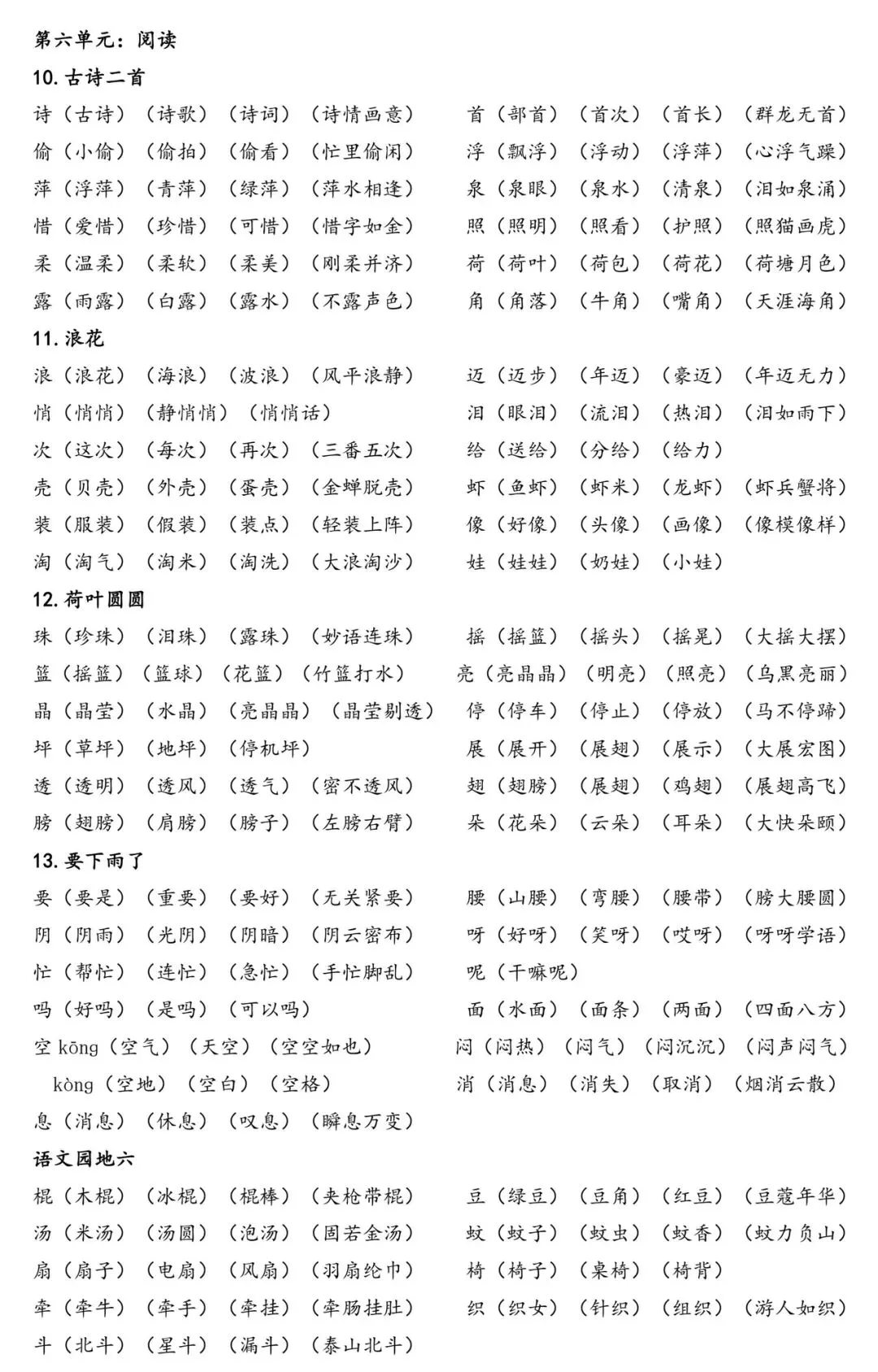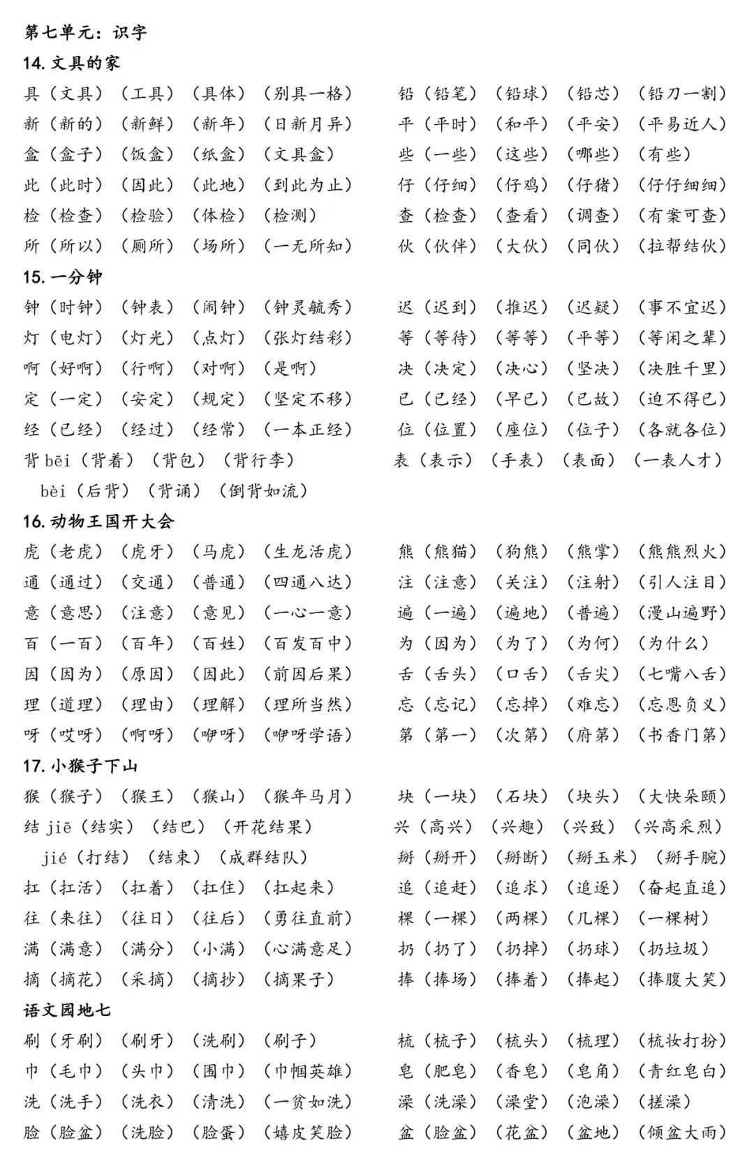 给大家整理了一份一年级下册「识字表」组词资料,