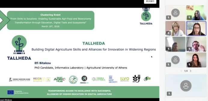 2026 年 3 月 16 日,中欧Econutri项目的姊妹项目Tallheda主办的 “从技能到解决方案:通过教育、数字工具和生态系统推动可持续农业食品与生物经济转型” 国际专题研讨会成功举办。会议由 Smart Agro Hub(智慧农业中心)承办,汇聚欧洲高校、科研机构及行业组织专家,围绕农食与生物经济领域人才培养、技术创新、成果转化及可持续转型开展深入研讨,为全球农业食品与生物经济高质量发展搭建了跨国家、跨领域的专业交流平台。