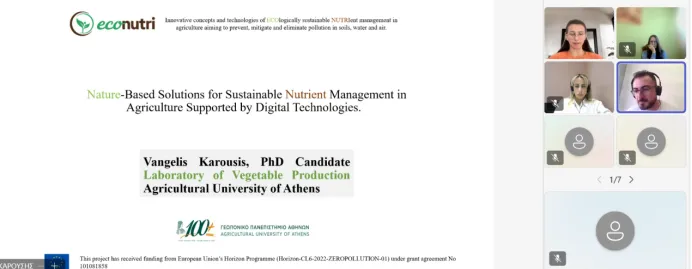 在技能培养与教育创新环节,Smart Agro Hub代表Angeliki Milioti致欢迎辞。雅典农业大学Effrosyni Bitakou介绍了TALLHEDA项目,分享如何为发展滞后地区构建数字农业技能体系与创新合作网络;布加勒斯特理工大学、布达佩斯技术与经济大学专家Alina Butu与Aniko Feher重点介绍BEAMING项目,展示如何依托高校合作推动生物经济知识创新与成果转化,通过模块化在线培训、科研人员调研、机构访谈等方式,精准识别能力短板,强化科研成果商业化与知识产权转化能力,搭建产学研协同转化通道。IEK AKMI International的Angeliki Kakou分享CultiVETing项目,聚焦西巴尔干地区,打通职业教育与农食行业劳动力市场需求;REZOS Brands的Paraskevi Liakopoulou以MY FARM项目为例,阐述多功能农业如何提升乡村韧性并培育新型农业技能人才。与会专家共同探讨:教育与培训体系如何更高效地响应可持续发展与劳动力市场新需求,为农食领域人才培养指明方向。在数字技术与自然基解决方案环节,雅典农业大学Vangelis Karousis分享ECONUTRI项目成果,展示数字技术如何支撑农业养分可持续管理,以自然基解决方案推动农业绿色低碳发展。专家们围绕“数字与自然基解决方案如何规模化推广、被农户广泛采纳”展开讨论,聚焦技术落地“最后一公里”,为农业低碳生产提供可落地路径。会议最后,Angeliki Milioti作总结发言,系统梳理研讨成果,明确未来合作方向与行动路径。