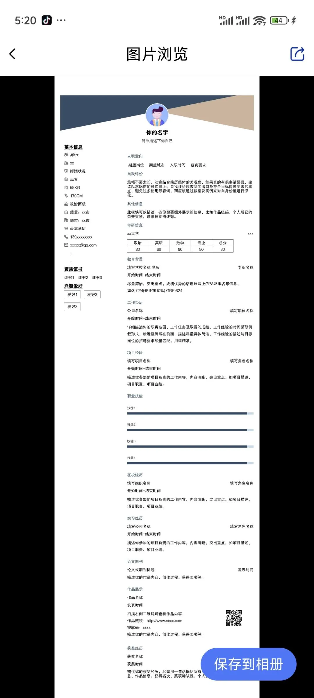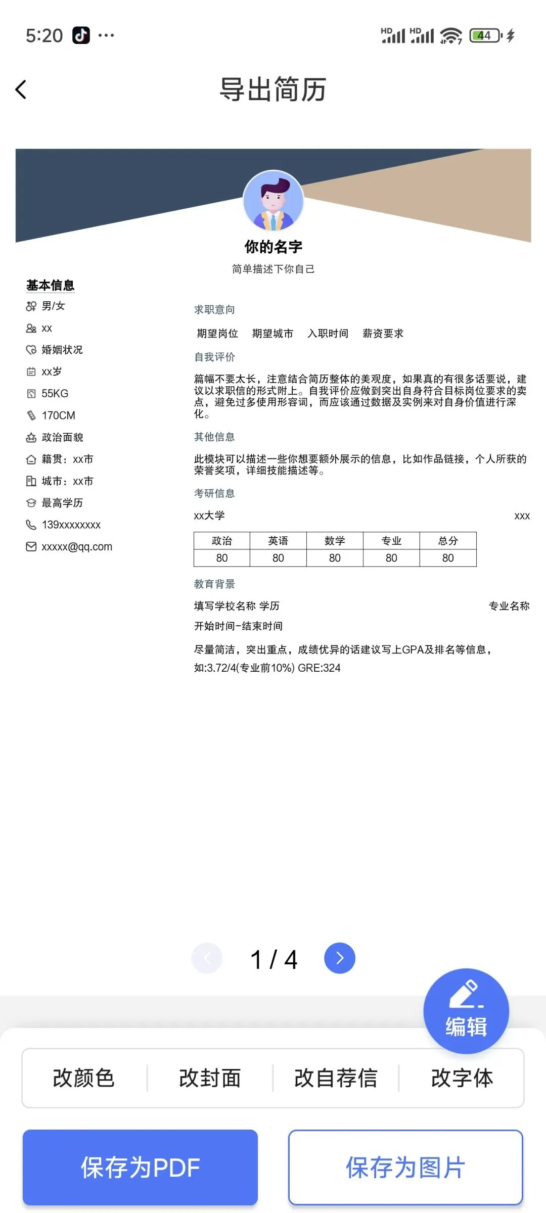做好之后,直接导出PDF格式发送给HR。格式完全不会乱,字体清晰,看起来很舒服,第一印象分绝对能拿捏住。