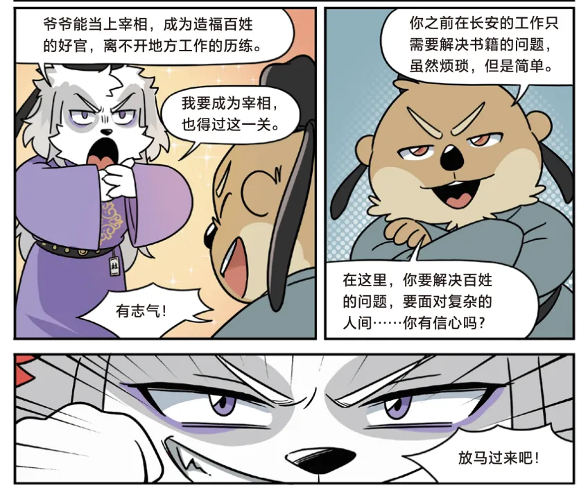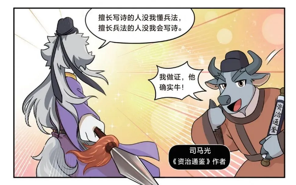 司马光的动物设定是牛。不过,我们已经升级了他的形象,正式出版的《漫画杜牧传》里,司马光会比上面这张图帅气很多。