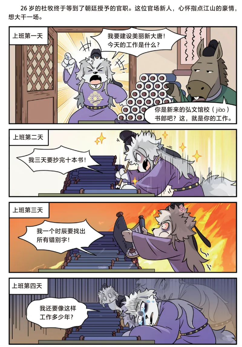 当我问起书中哪段剧情最好笑?王奕涵认为,是杜牧被工作榨干。