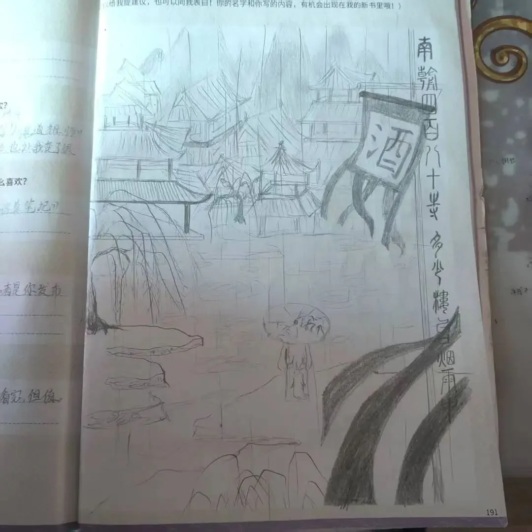 最后,王奕涵给我画了一幅画,是杜牧的《江南春》!