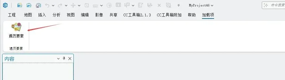 打开 ArcGIS Pro 软件,切换至顶部加载项选项卡,点击遍历要素按钮,即可弹出插件面板。