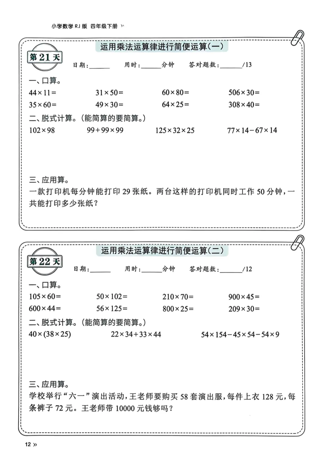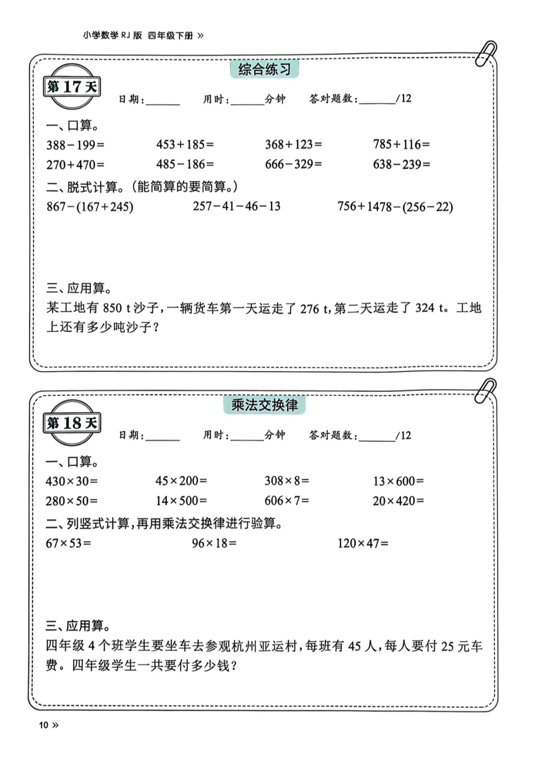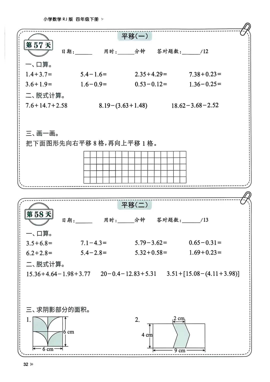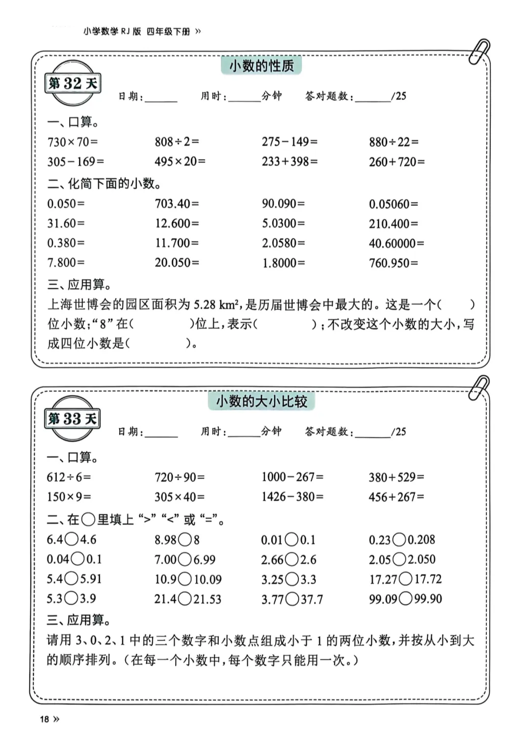 四年级下册数学全册同步一课一练,电子版可保存打印~